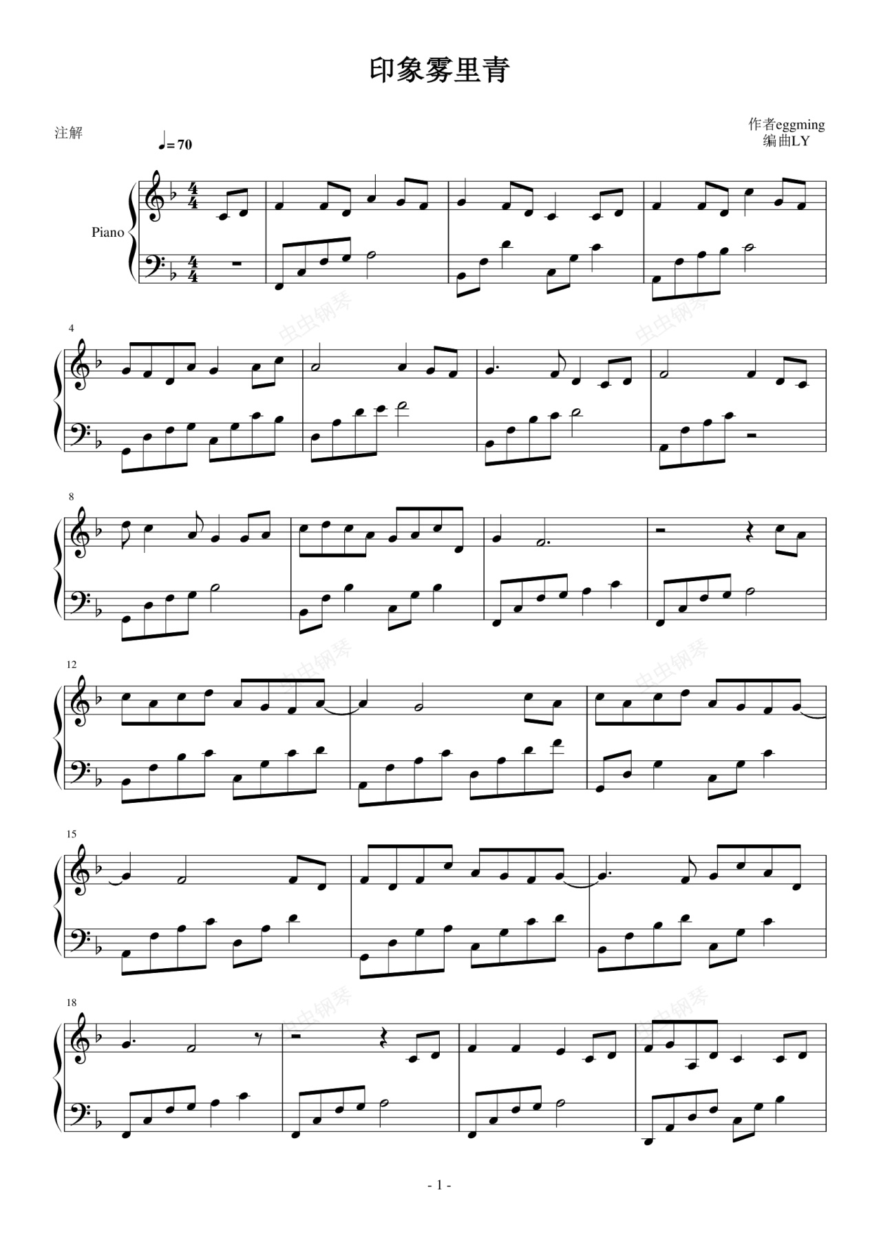 钢琴谱:印象雾里青(旋律融合版)