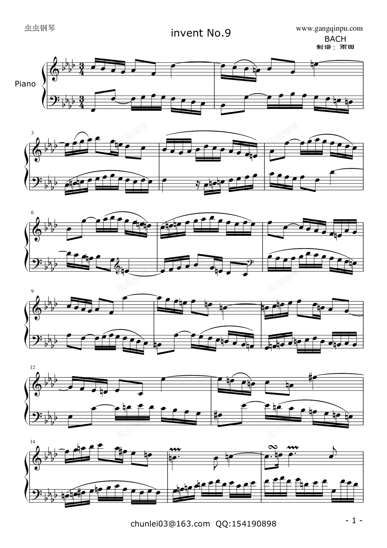 钢琴谱:巴赫《二部创意---NO.9》 第九首