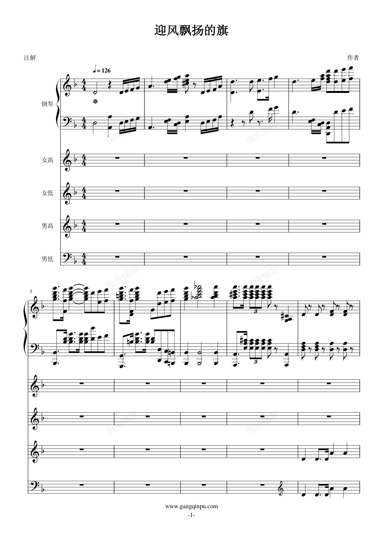 钢琴谱:迎风飘扬的旗