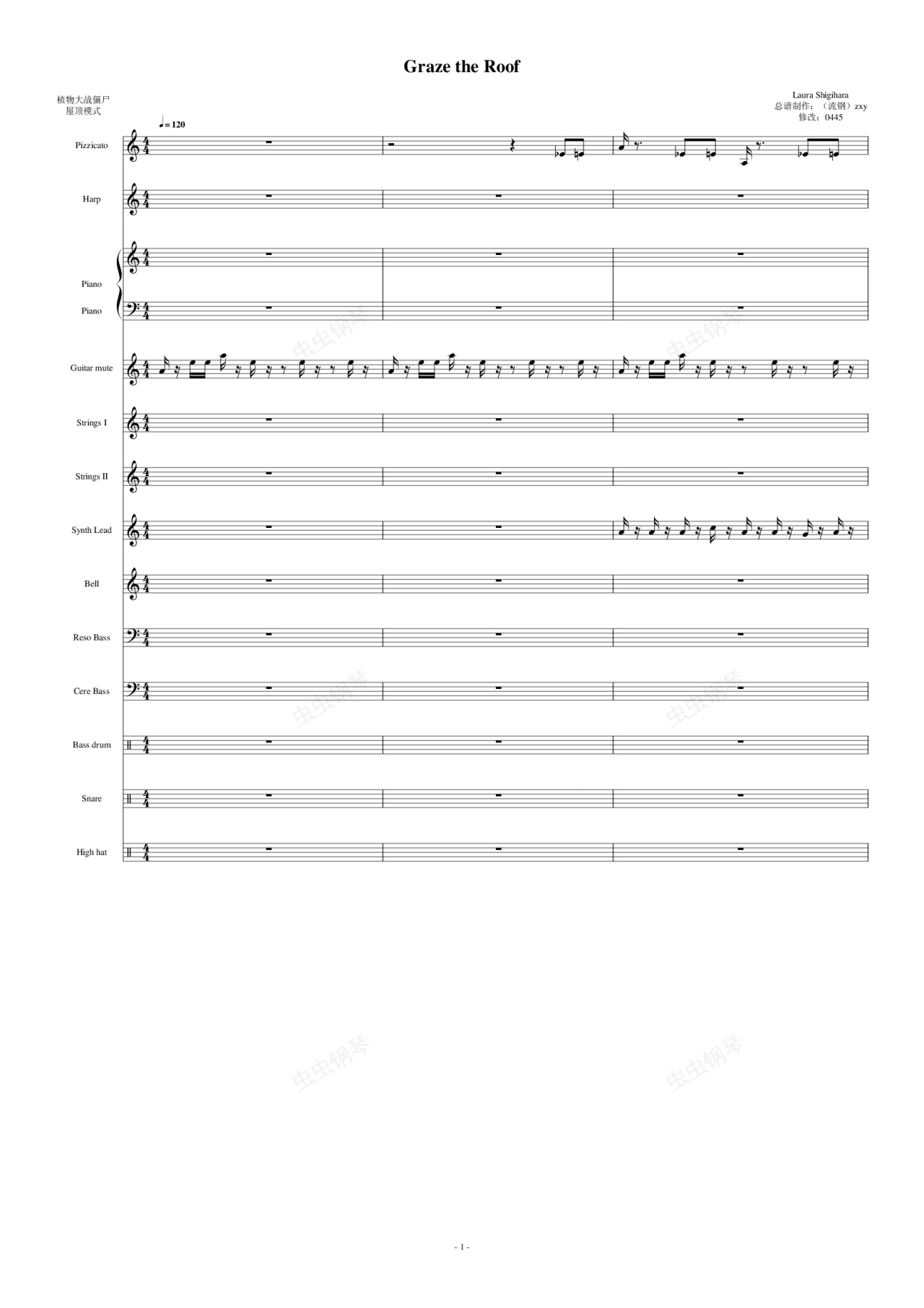 钢琴谱:植物大战僵尸-屋顶[Graze the Roof]【总谱】