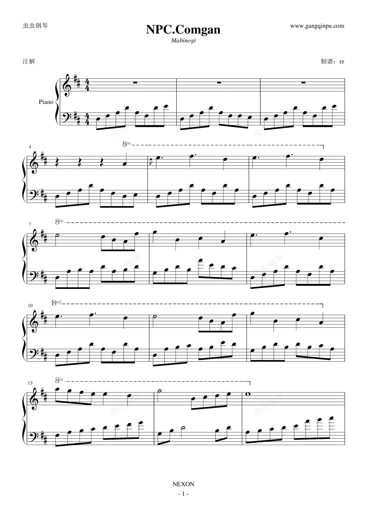 钢琴谱:洛奇 NPC comgan