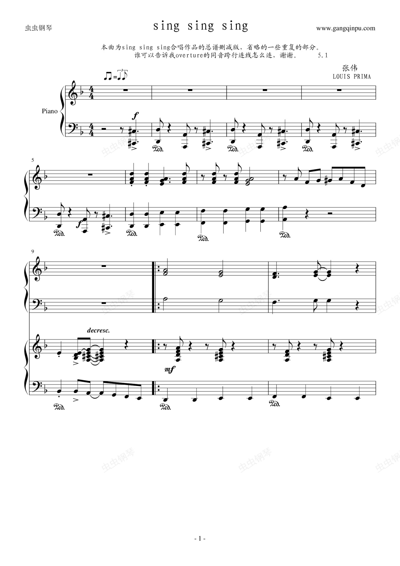 钢琴谱:sing sing sing(爵士乐总谱)
