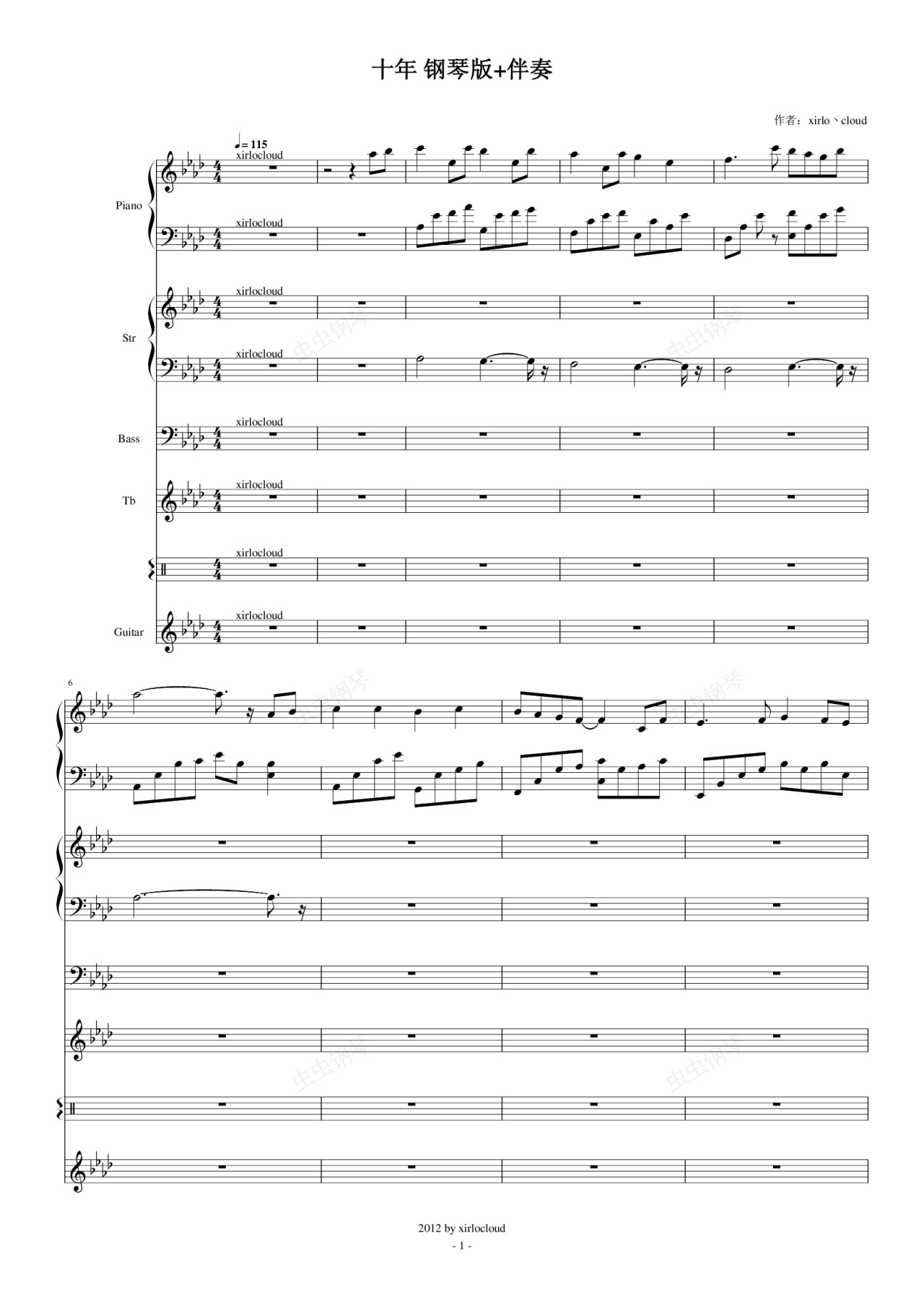 钢琴谱:十年 钢琴版完美伴奏