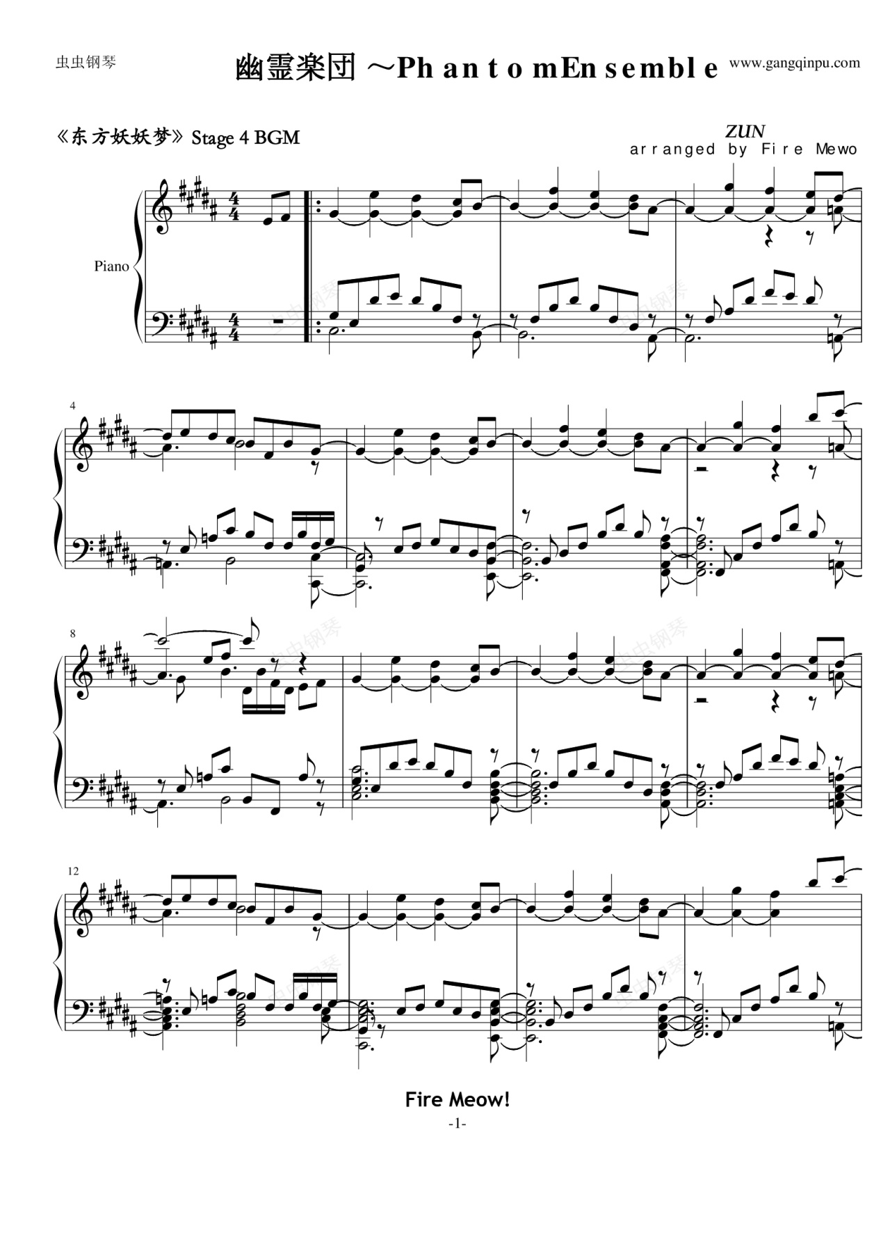 钢琴谱:【东方妖妖梦】幽灵乐团 Phantom Ensemble
