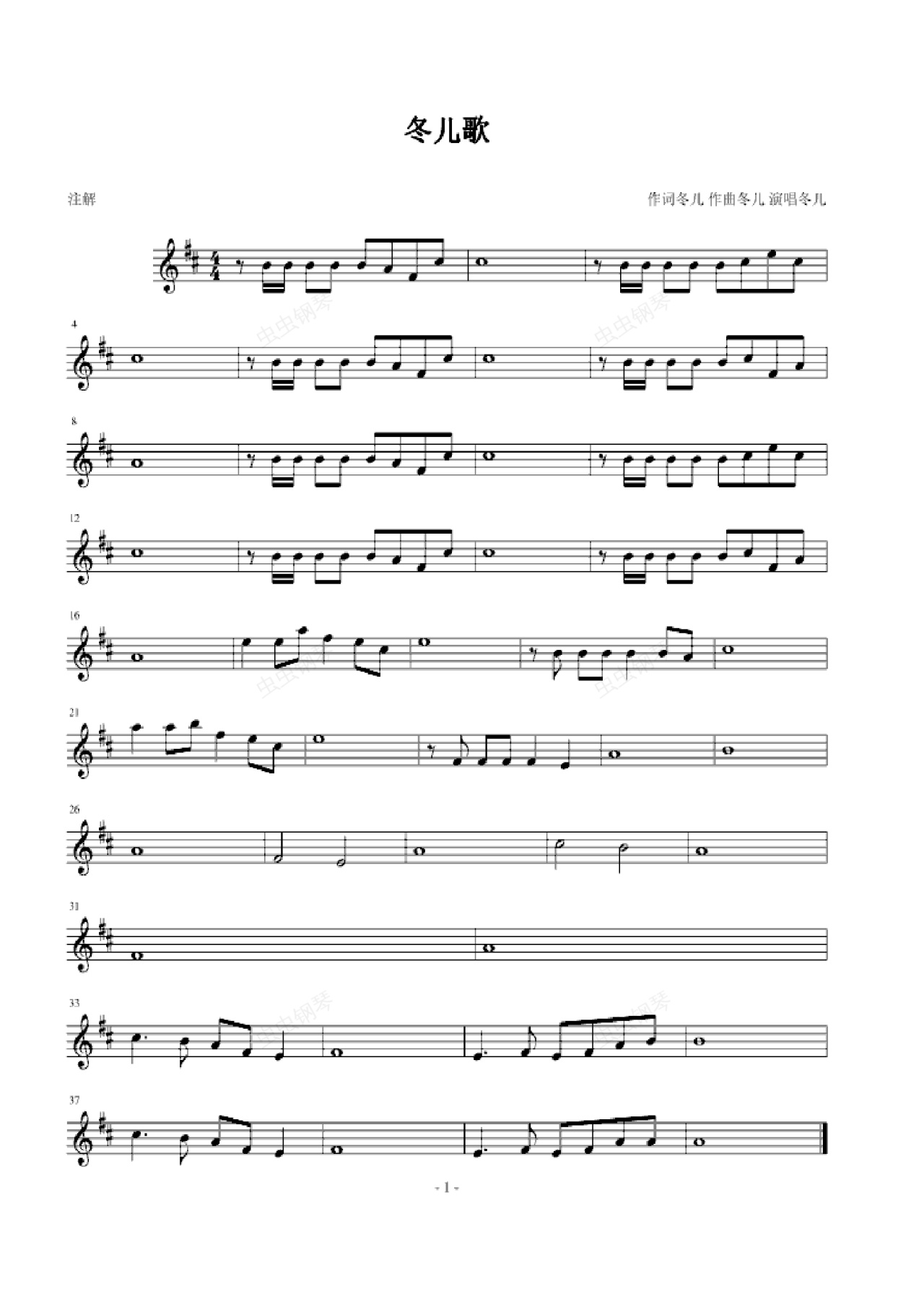 钢琴谱:冬儿歌