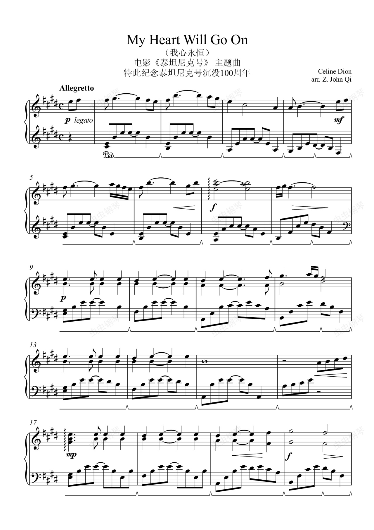 钢琴谱:My Heart Will Go On(我心永恒)——泰坦尼克号主题曲