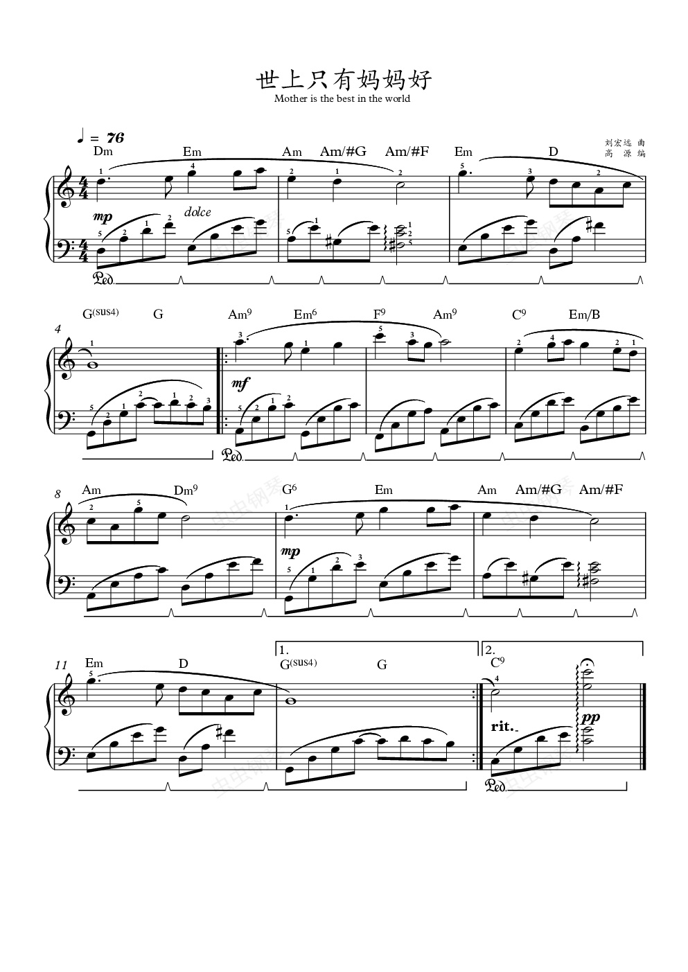 钢琴谱:世上只有妈妈好