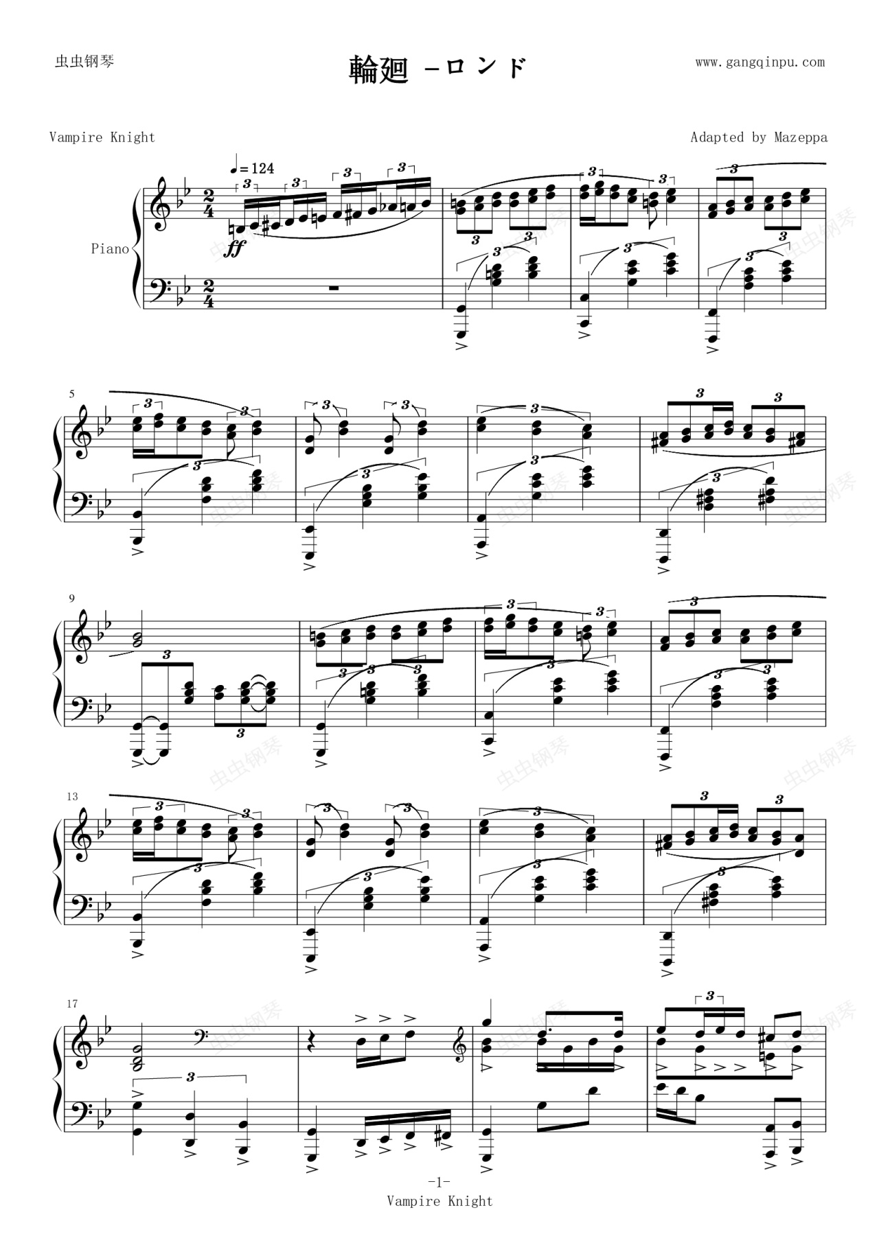 钢琴谱:吸血鬼骑士guilty片头