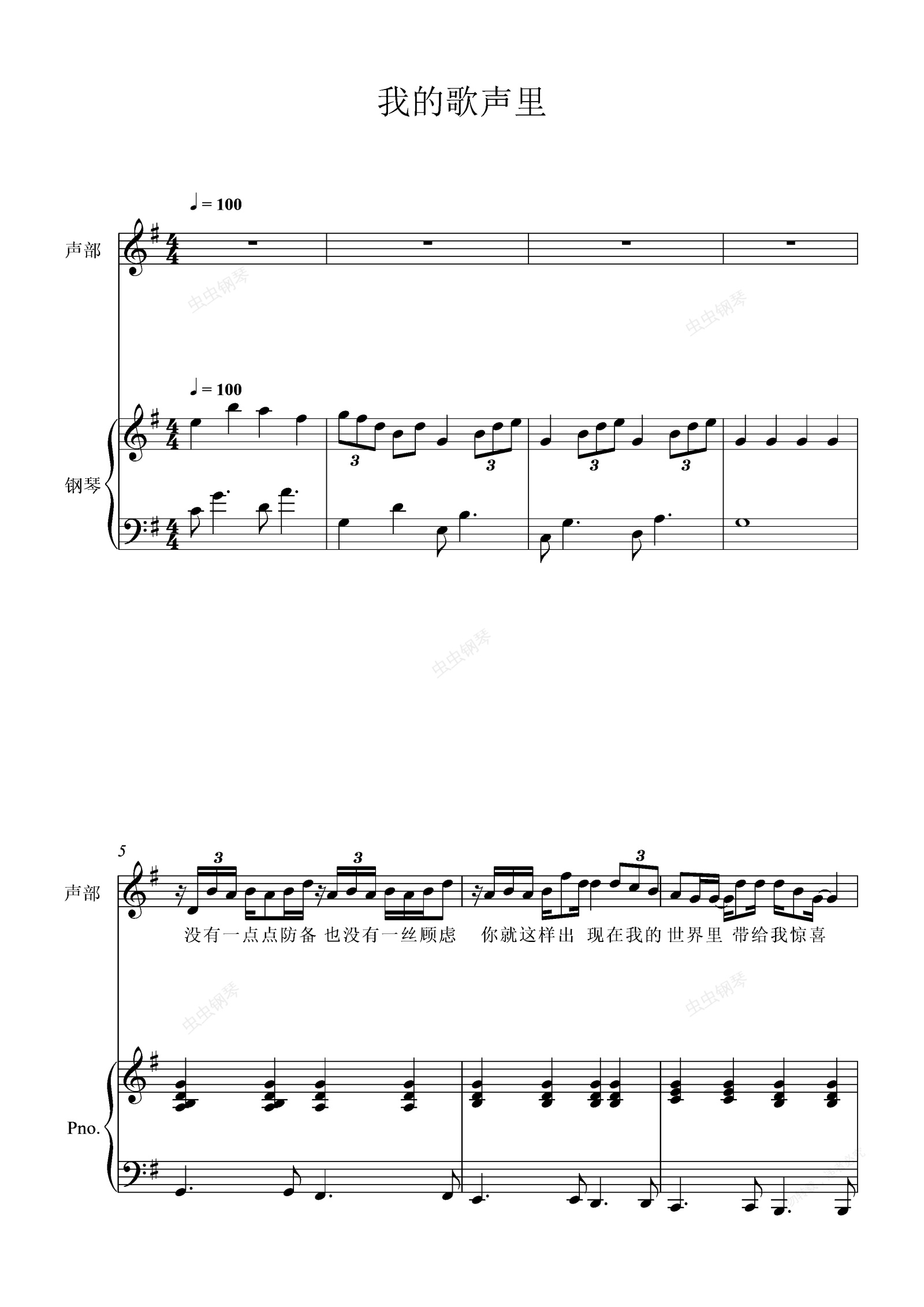 钢琴谱:我的歌声里女声弹唱谱伴奏谱