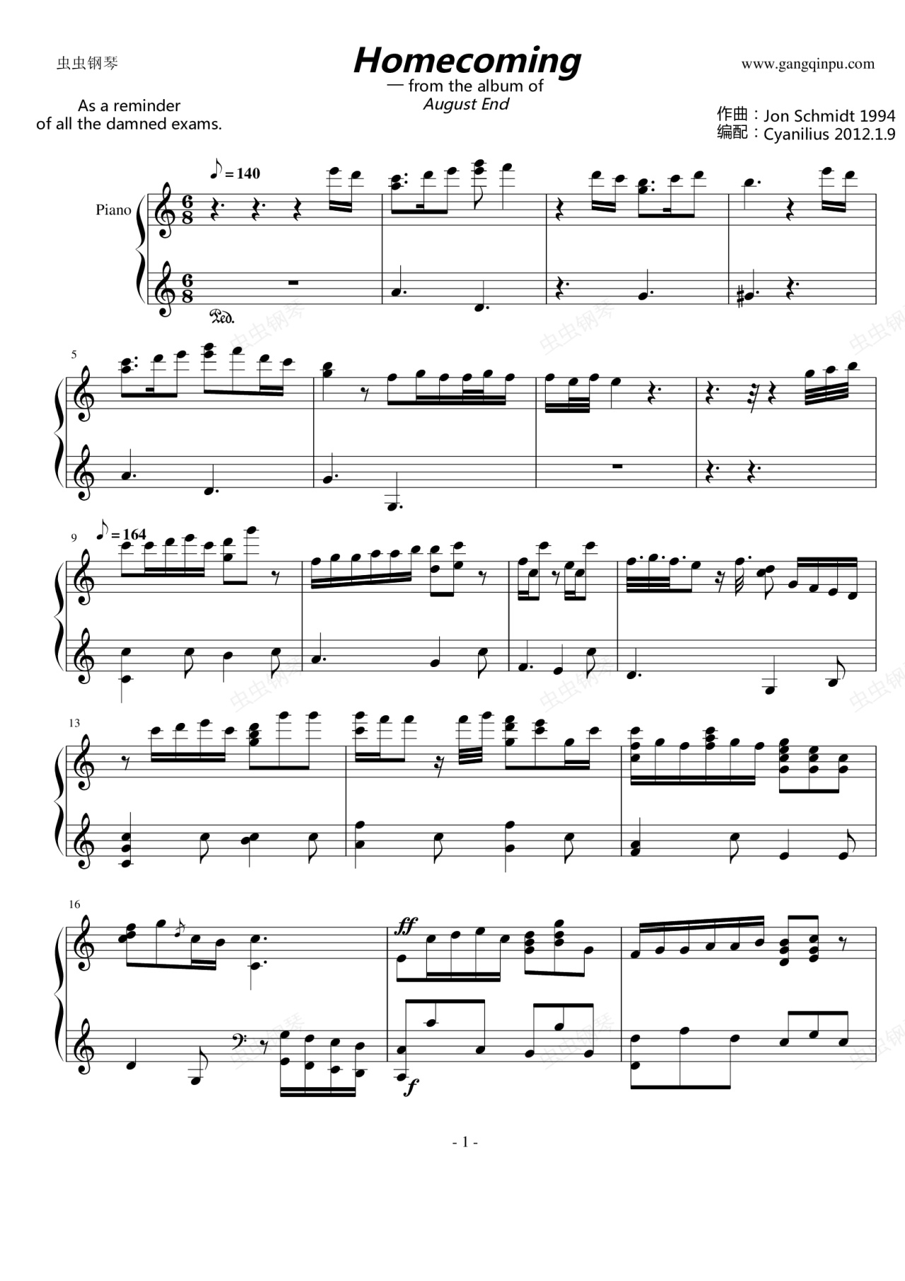钢琴谱:Homecoming