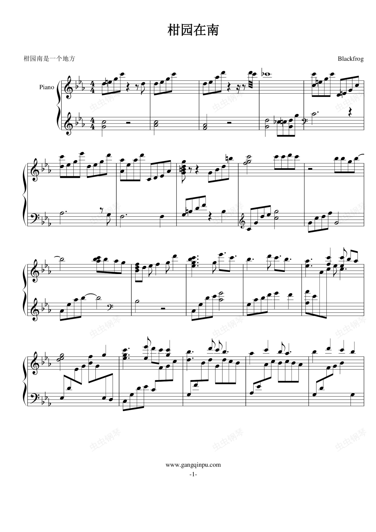 钢琴谱:柑园在南