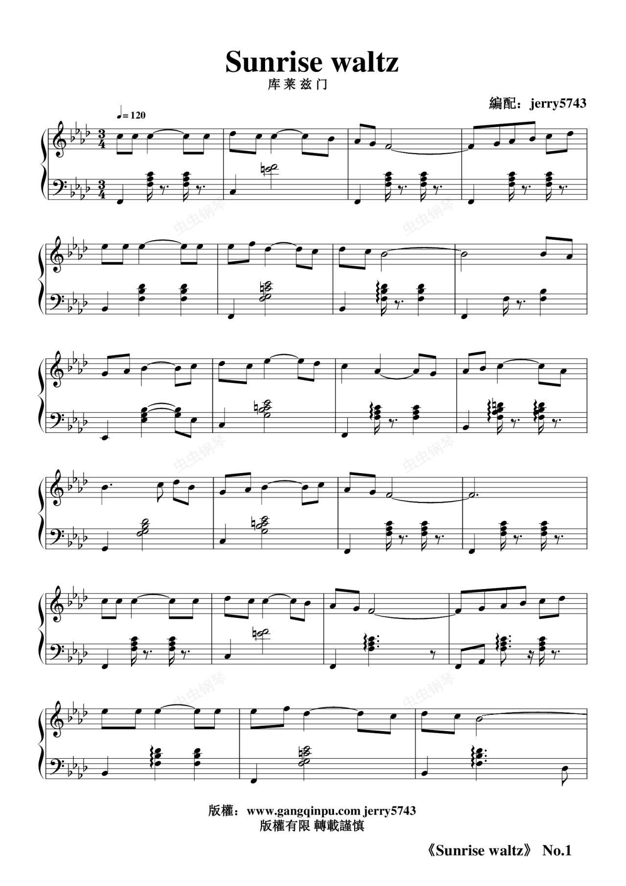 钢琴谱:Sunrise waltz 日出 華爾茲