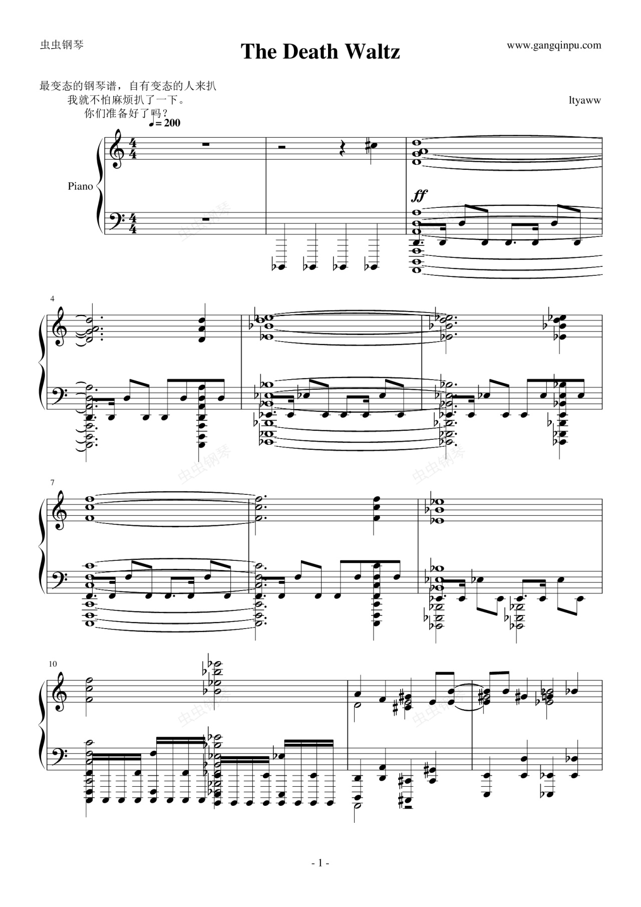 钢琴谱:死亡华尔兹(最終鬼畜妹フランドール・S)