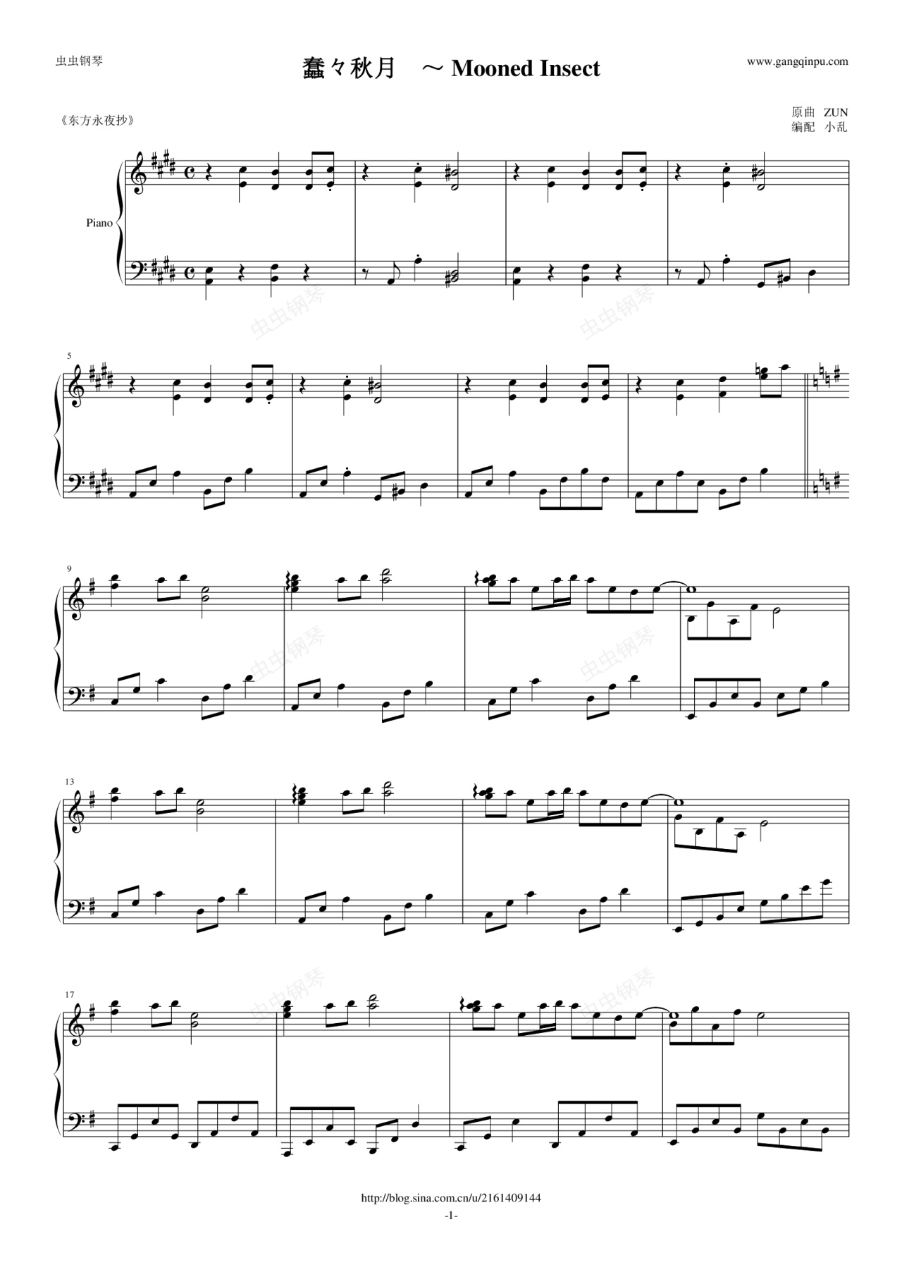 钢琴谱:【东方】蠢々秋月 ~ Mooned Insect