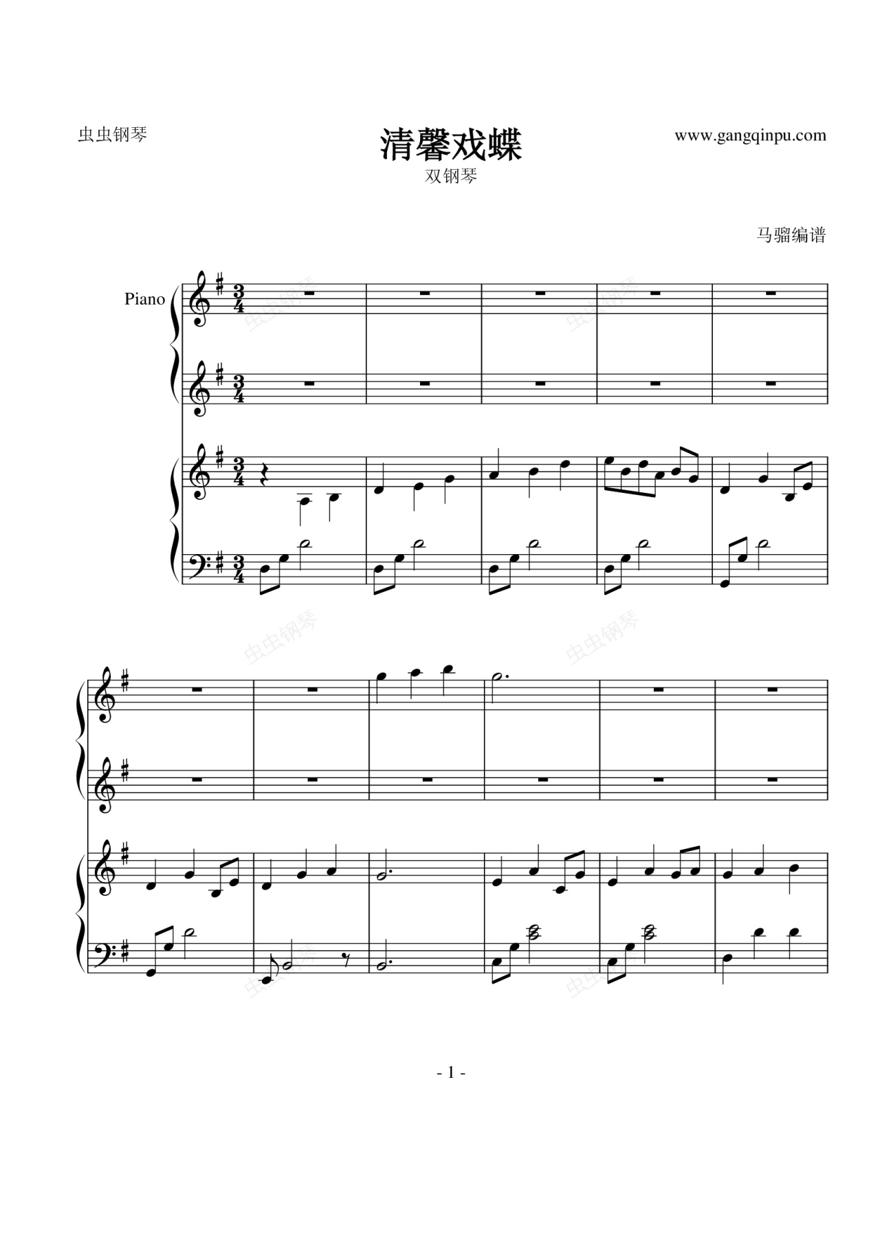 钢琴谱:【古剑奇谭】清馨戏蝶 - 襄铃主题曲(双钢琴)