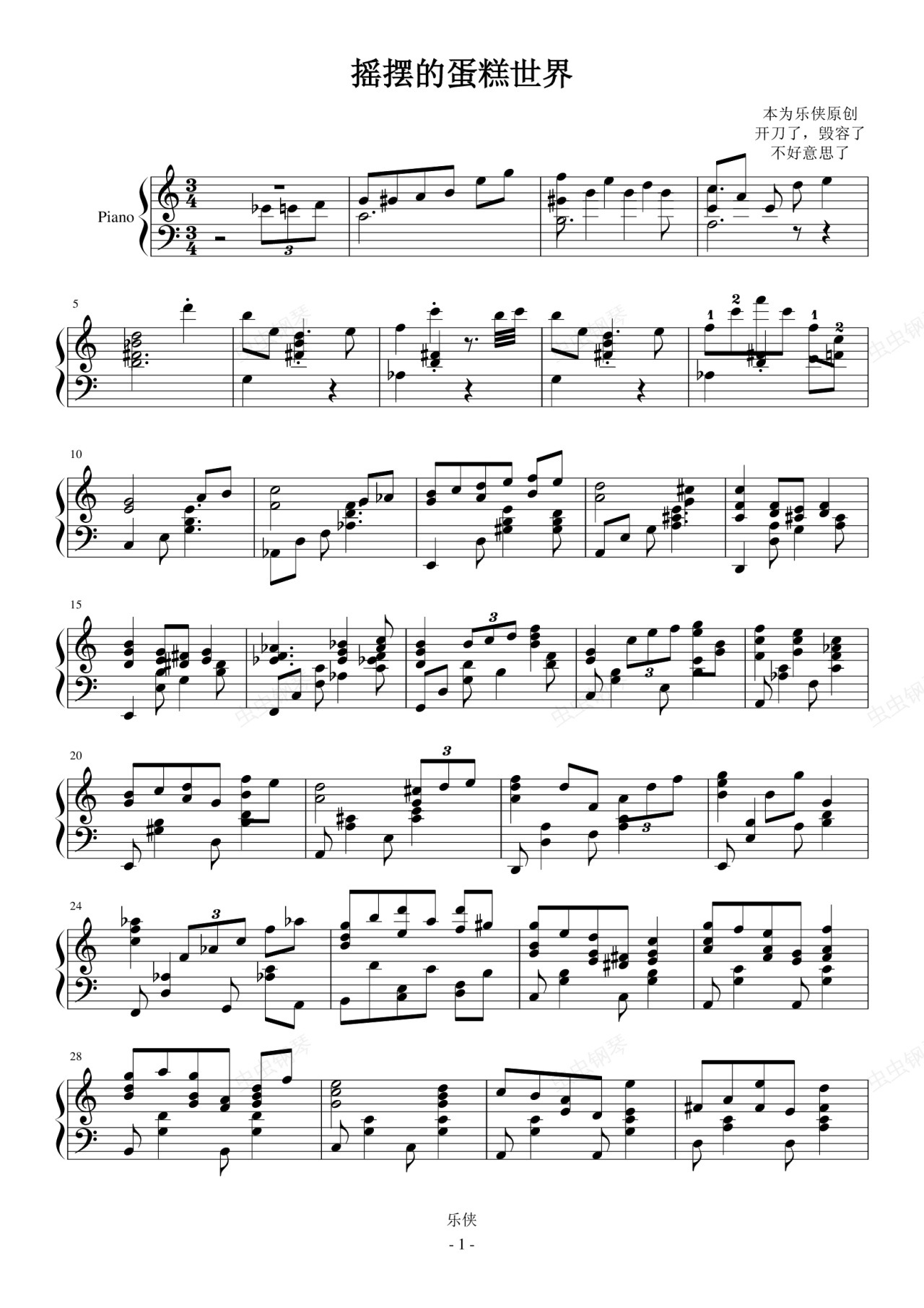 钢琴谱:乐侠 摇摆的蛋糕世界