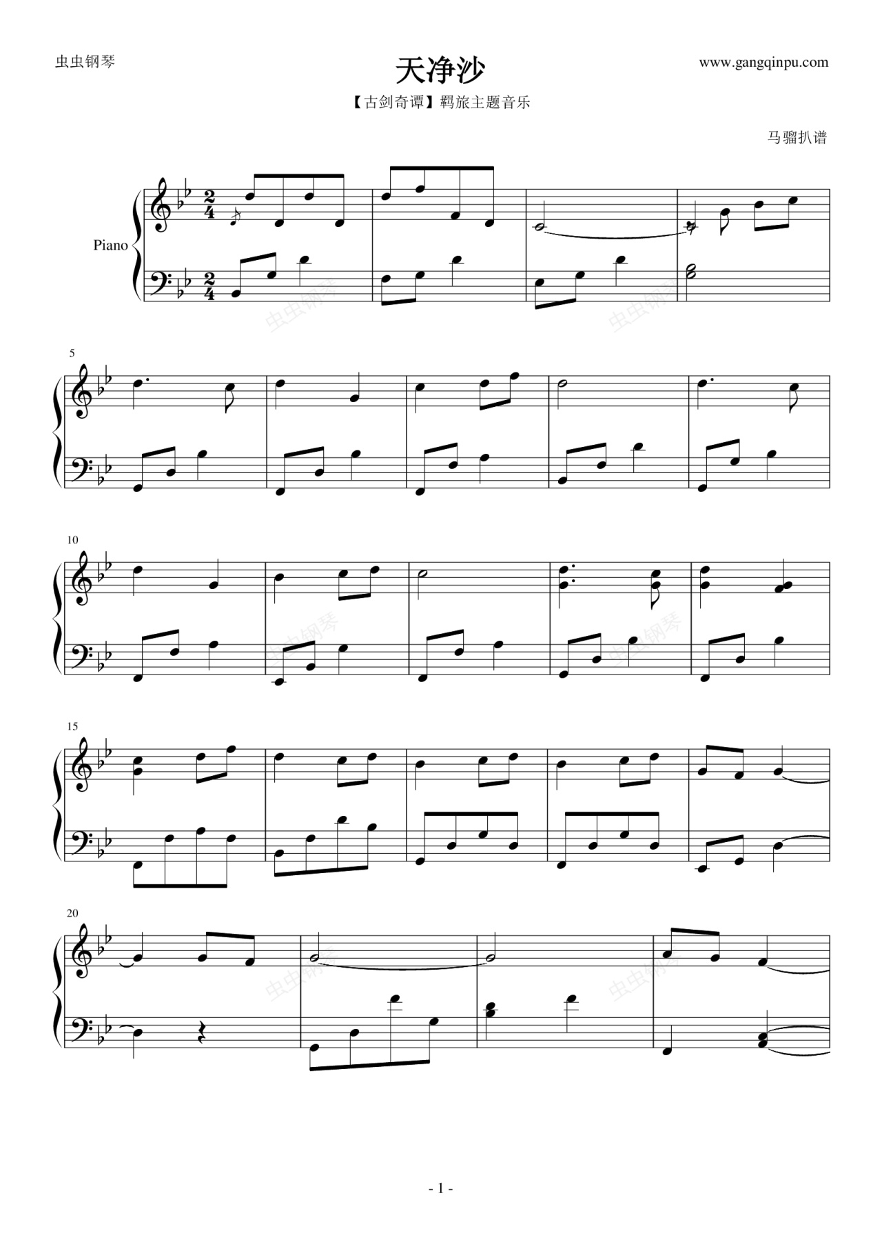 钢琴谱:【古剑奇谭】天净沙 - 羁旅主题音乐