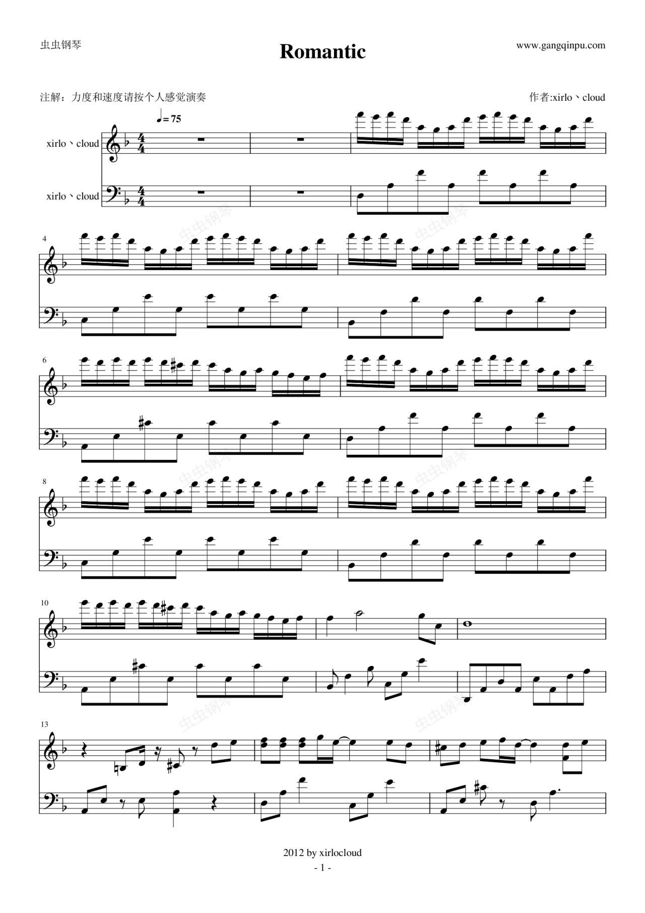 钢琴谱:Romantic