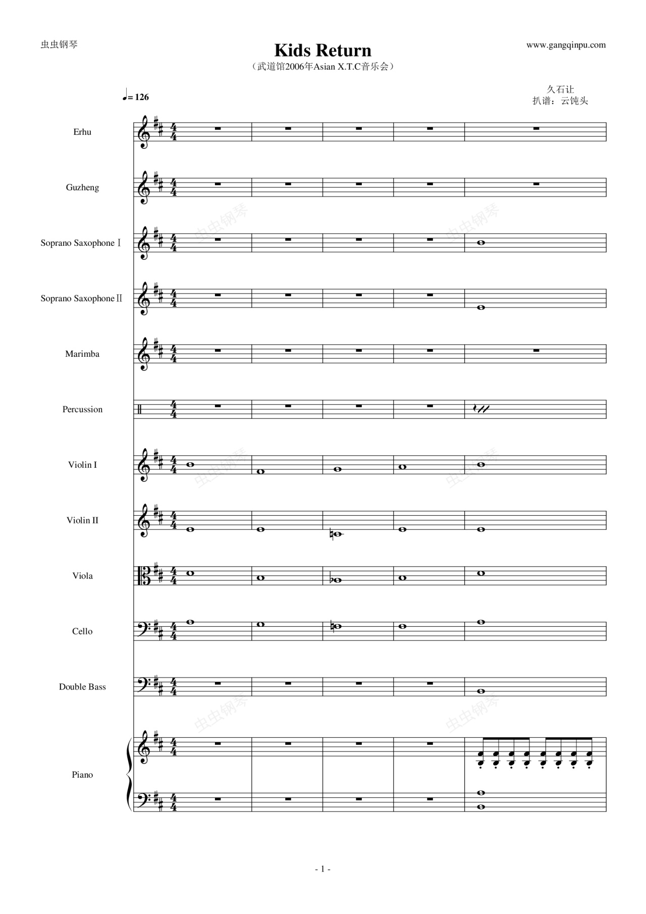 钢琴谱:Kids Return(Asian X.T.C)