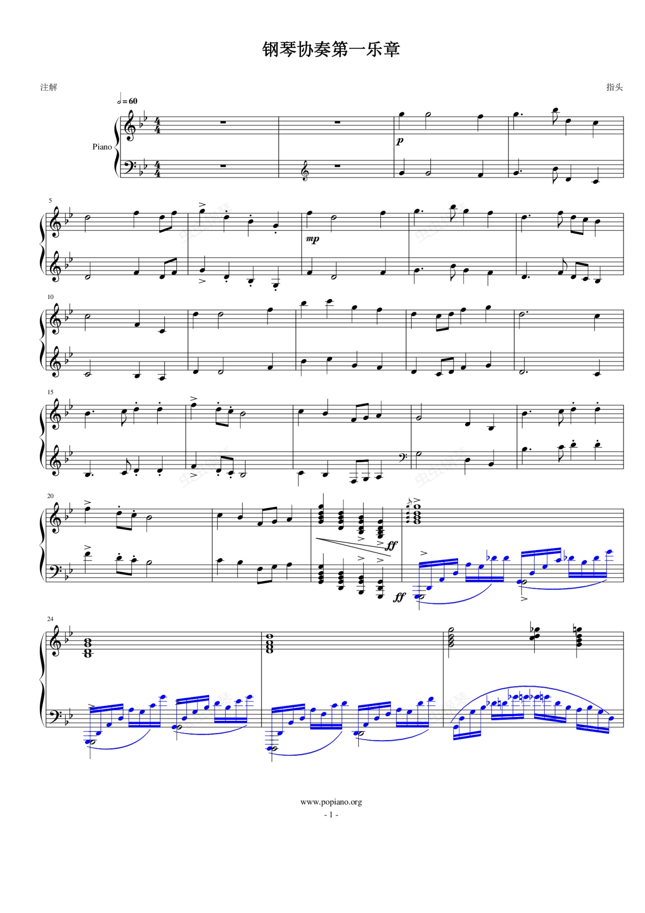 钢琴谱:指头钢琴协奏曲第一乐章