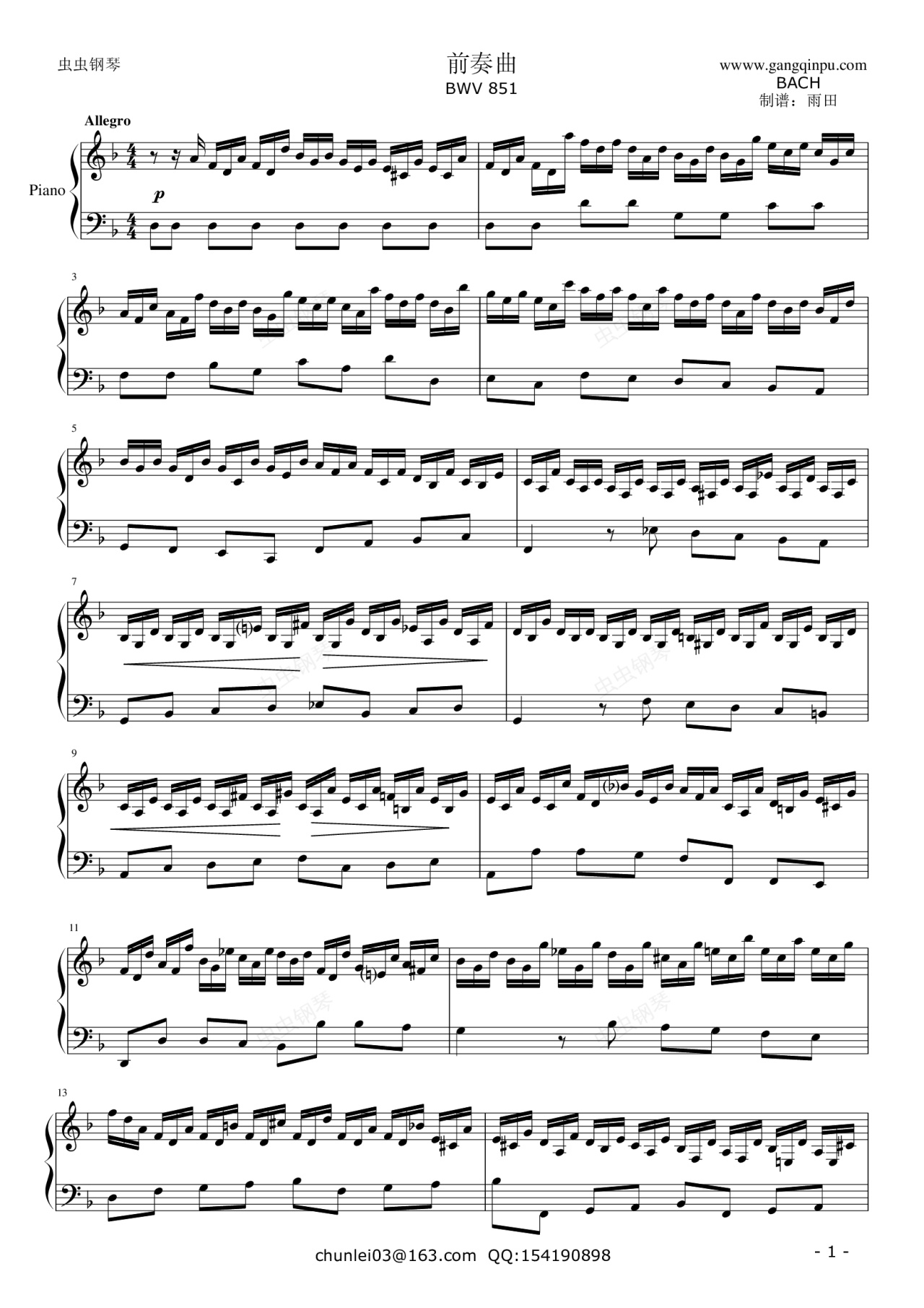 钢琴谱:平均律《D小调前奏曲(BWV 851)》