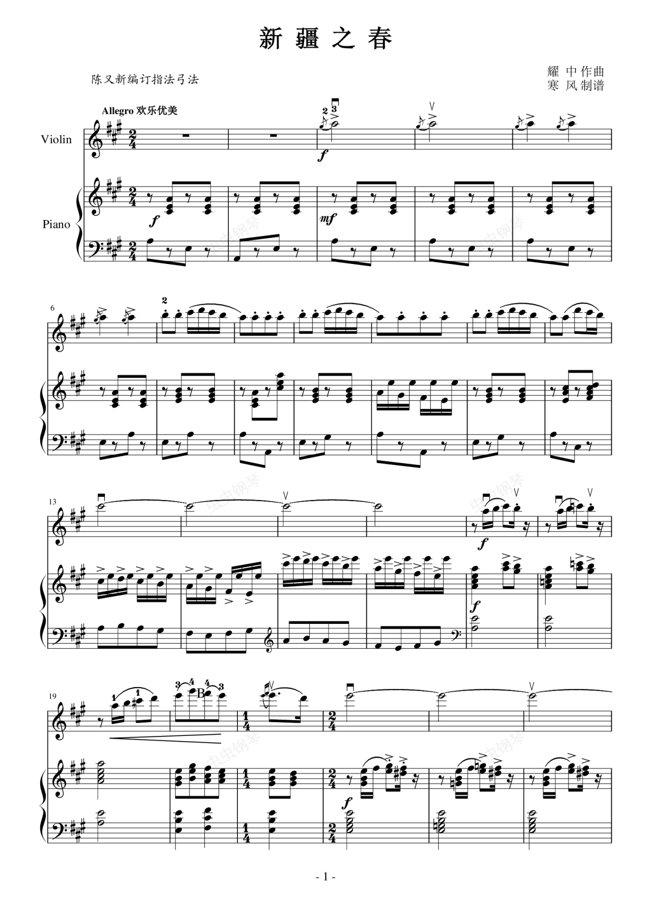 耀中-《新疆之春》钢琴小提琴,流行钢琴网网友 制作,作者自述: