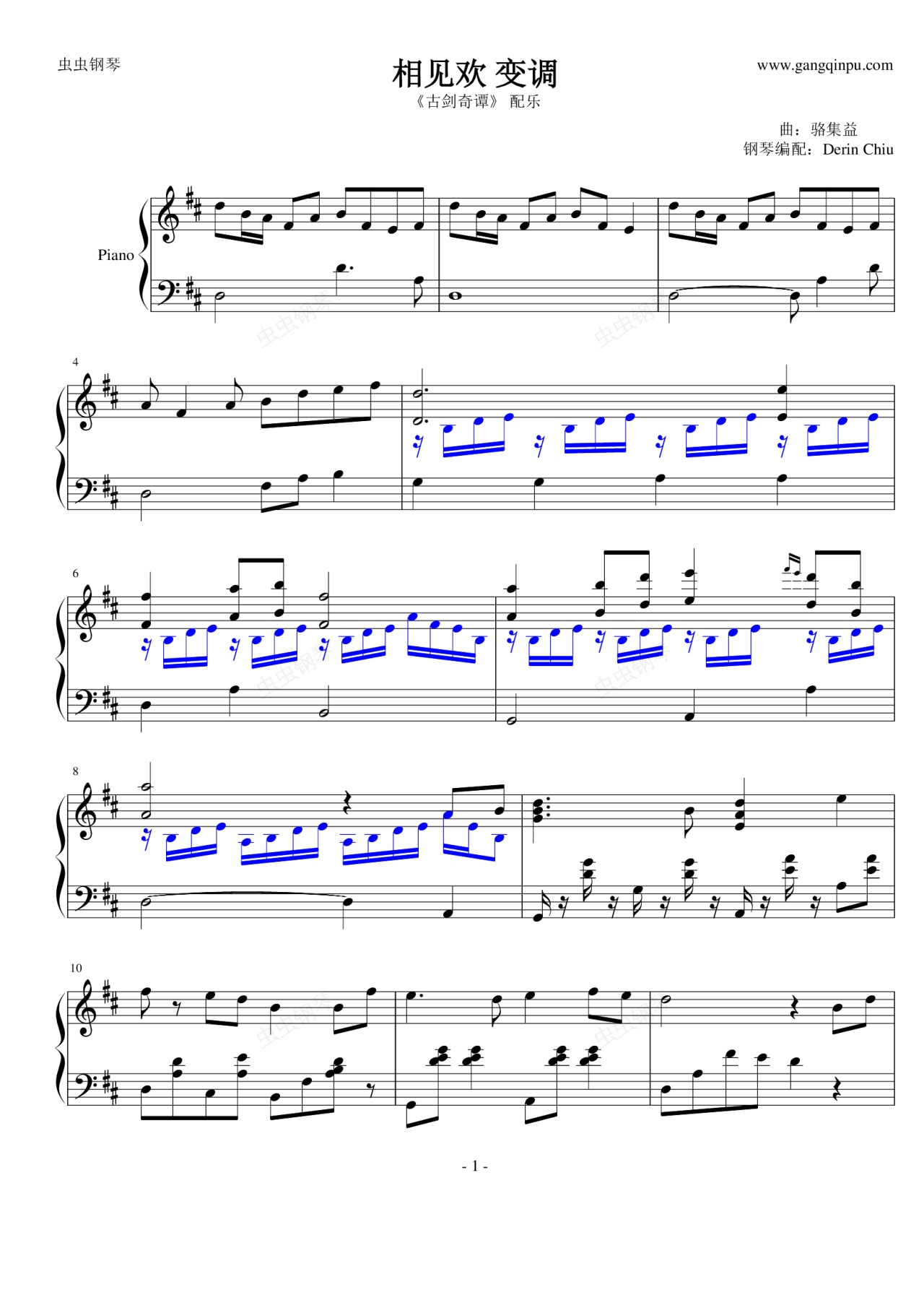 钢琴谱:相见欢 变调