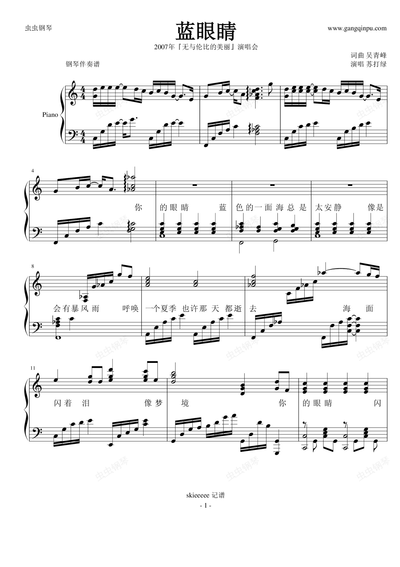 钢琴谱:蓝眼睛(演唱会版)(钢琴伴奏谱)
