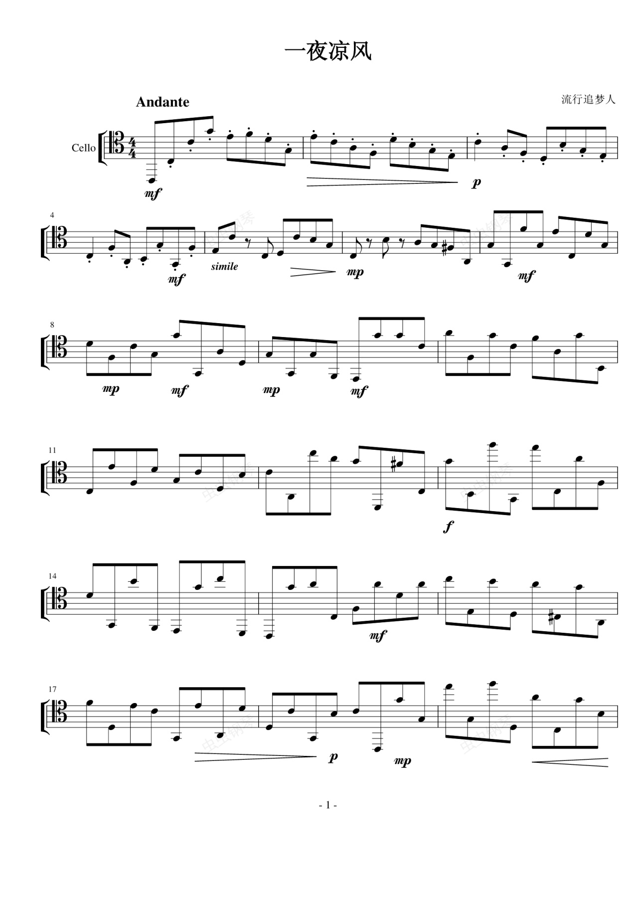 钢琴谱:一夜凉风
