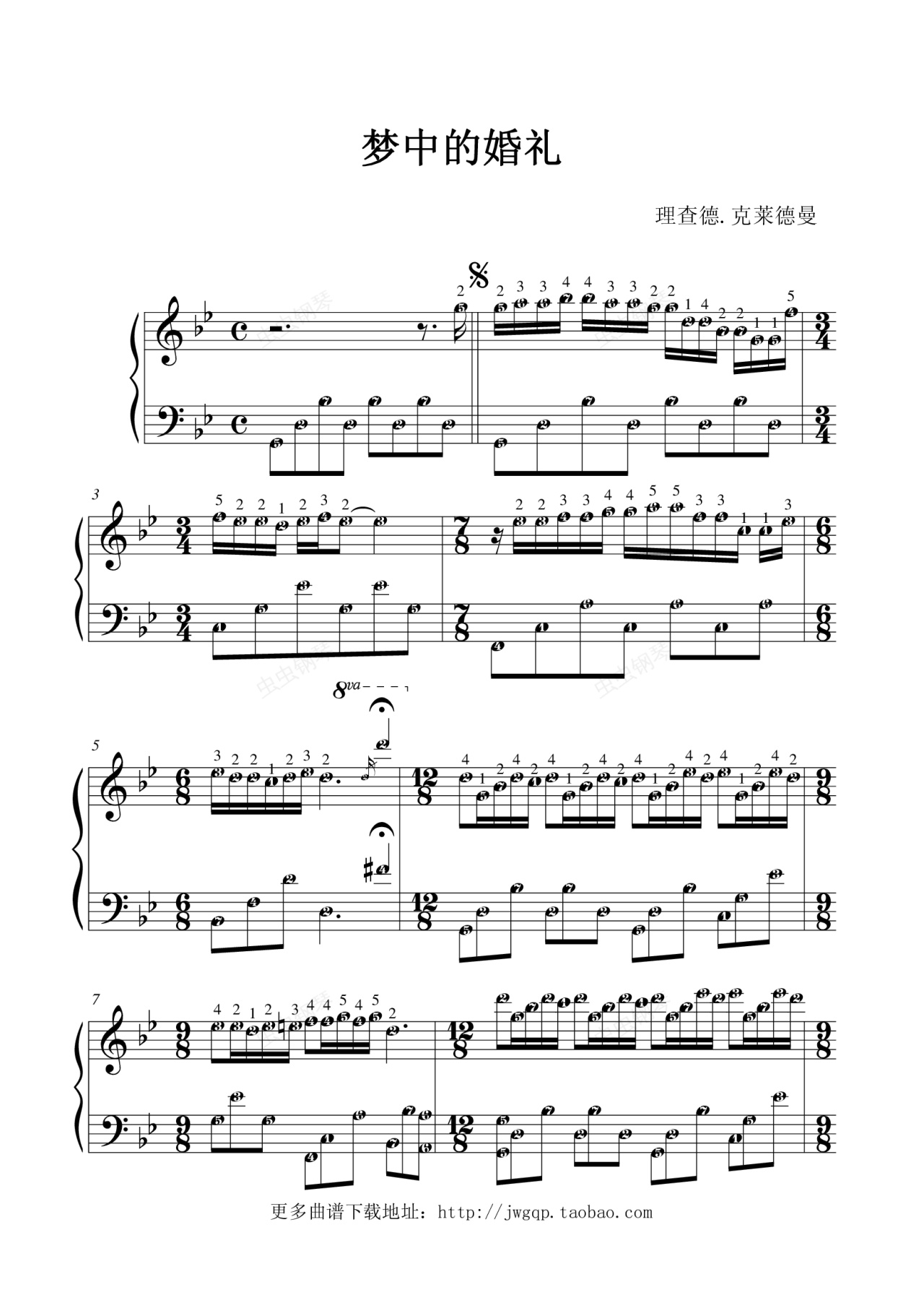 钢琴谱:梦中的婚礼 简谱版 附指法