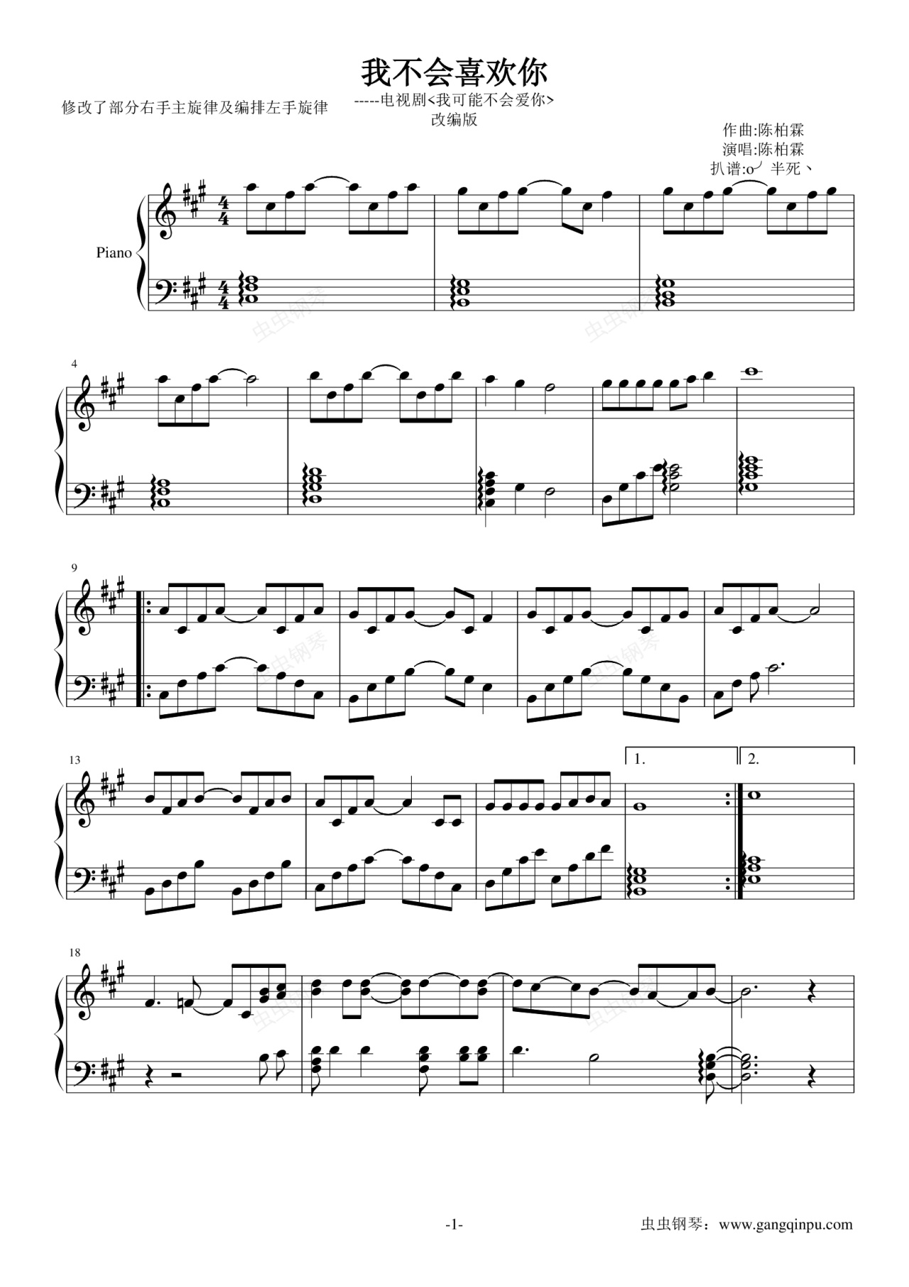 钢琴谱:我不会喜欢你