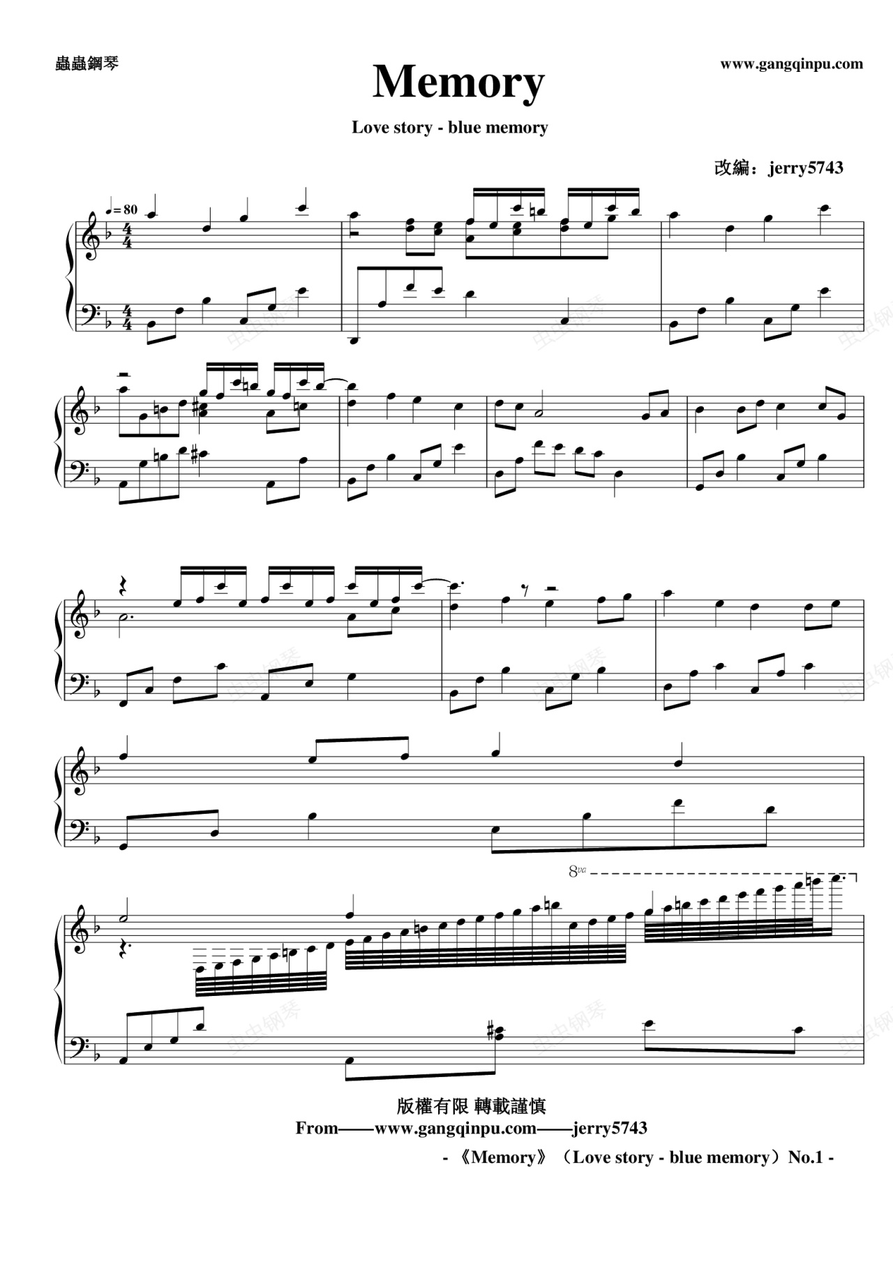 钢琴谱:獻予“灑家”的《memory 記憶》