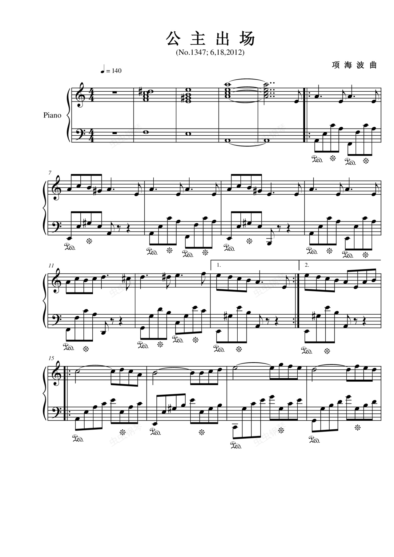 钢琴谱:“公主”奏鸣曲第一乐章:公主出场