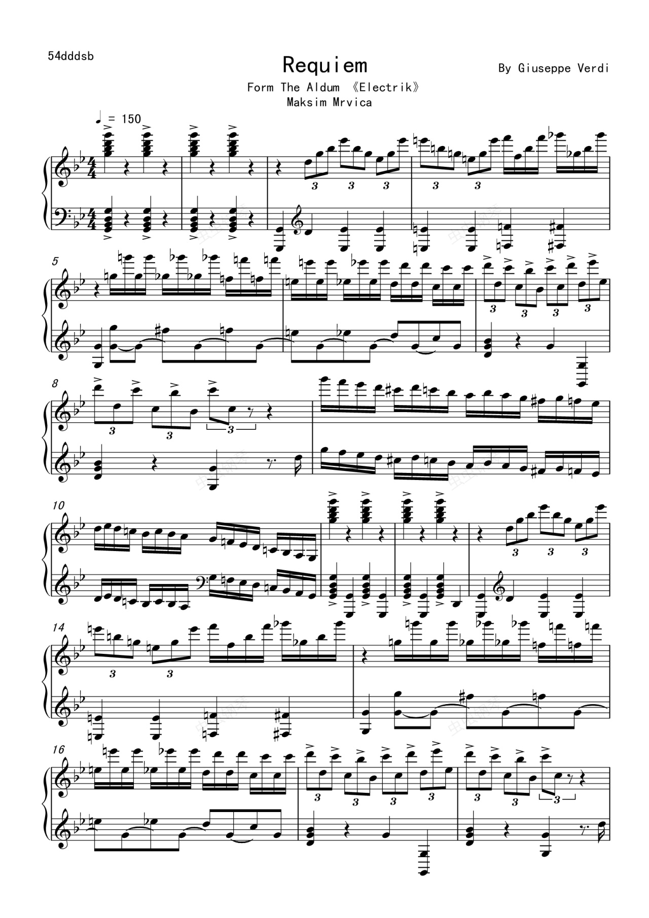 钢琴谱:马克西姆-安魂曲