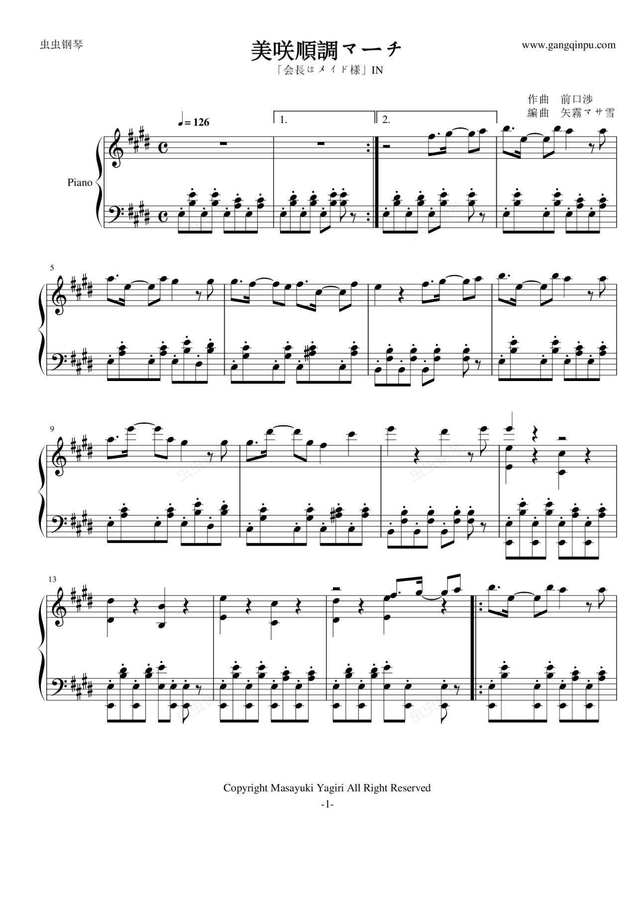 钢琴谱:美咲順調マーチ 《会长是女仆大人》场景音乐
