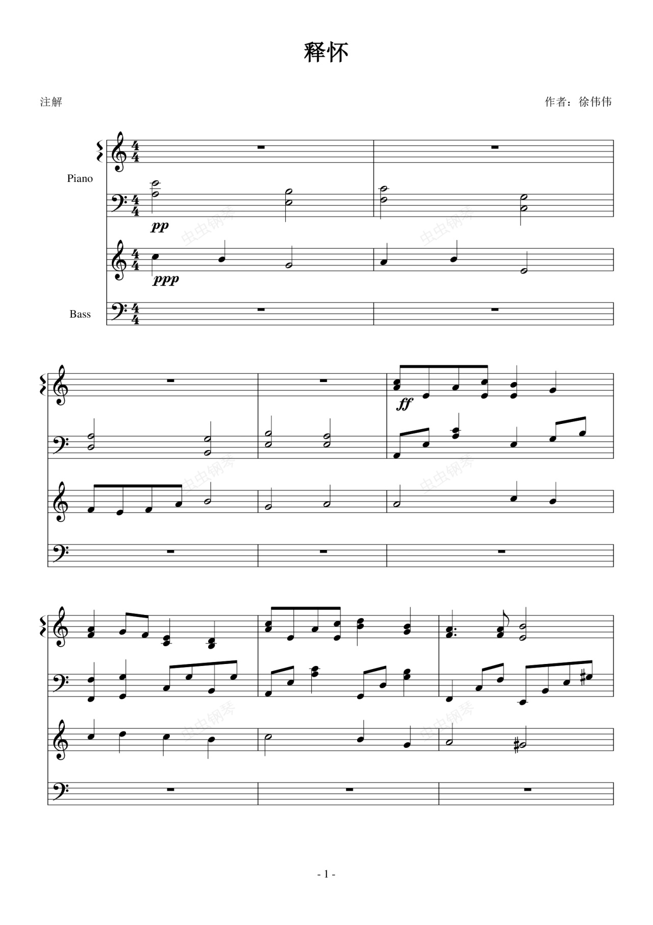 钢琴谱:释怀