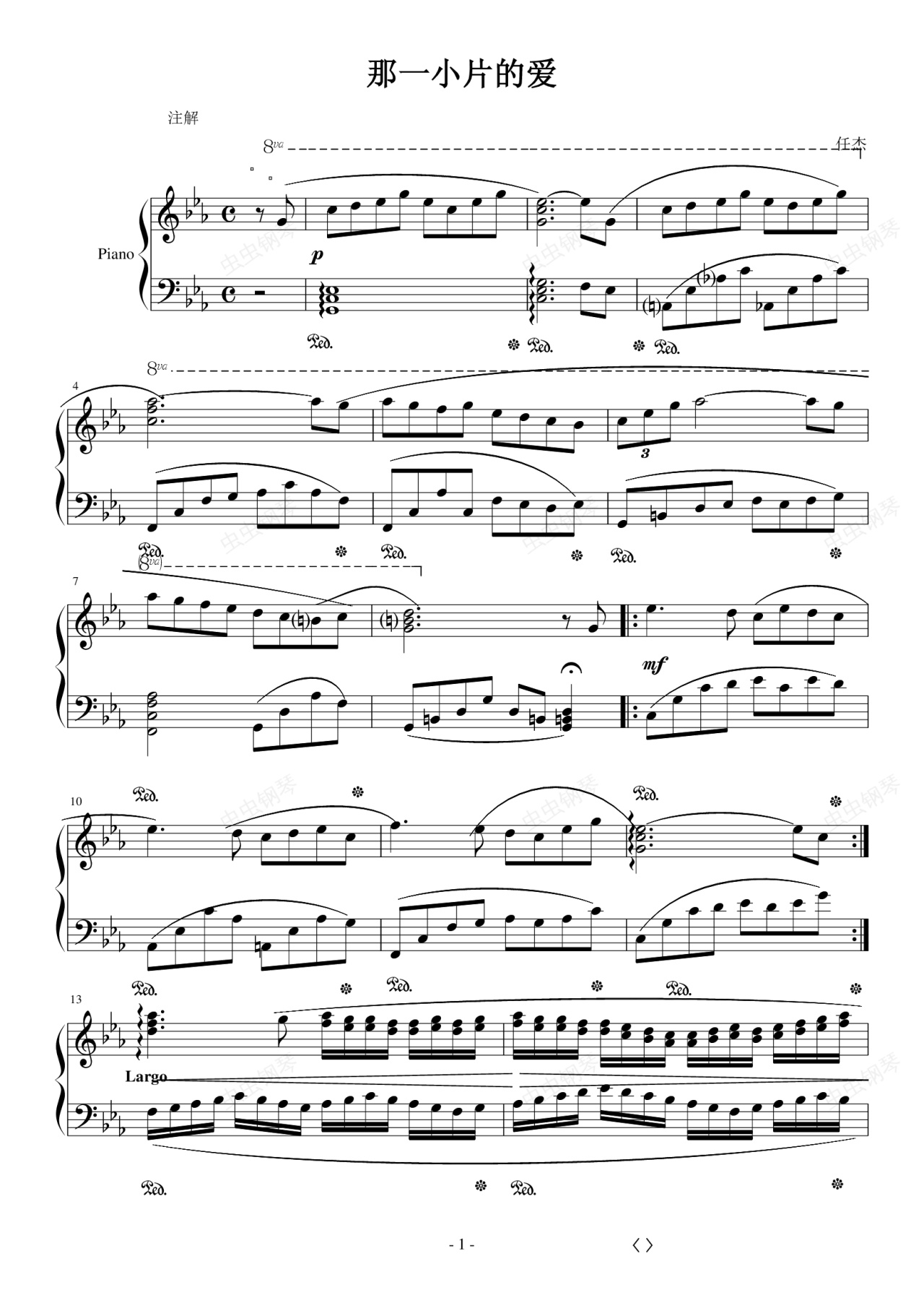 钢琴谱:那一小片的爱
