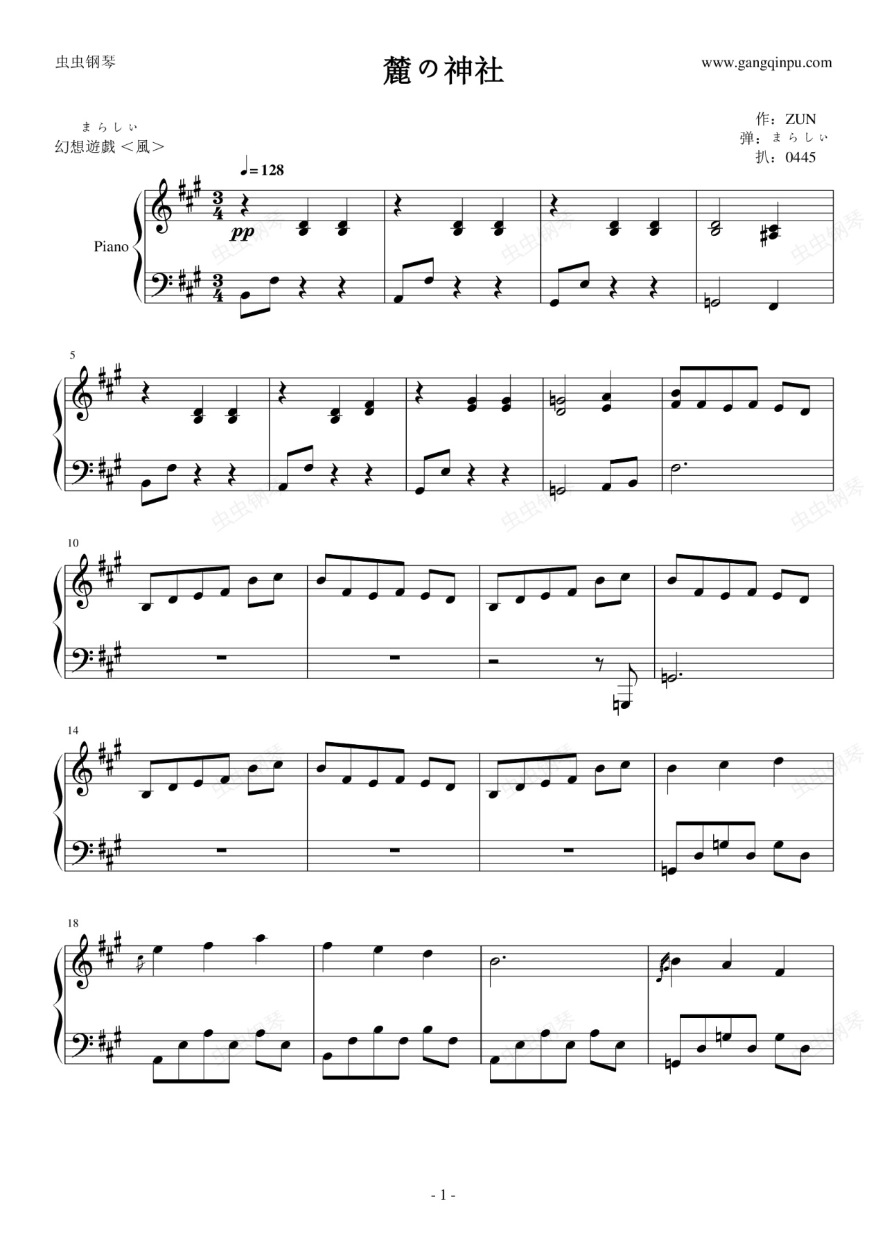 钢琴谱:【东方风神录】【触手猴】麓の神社