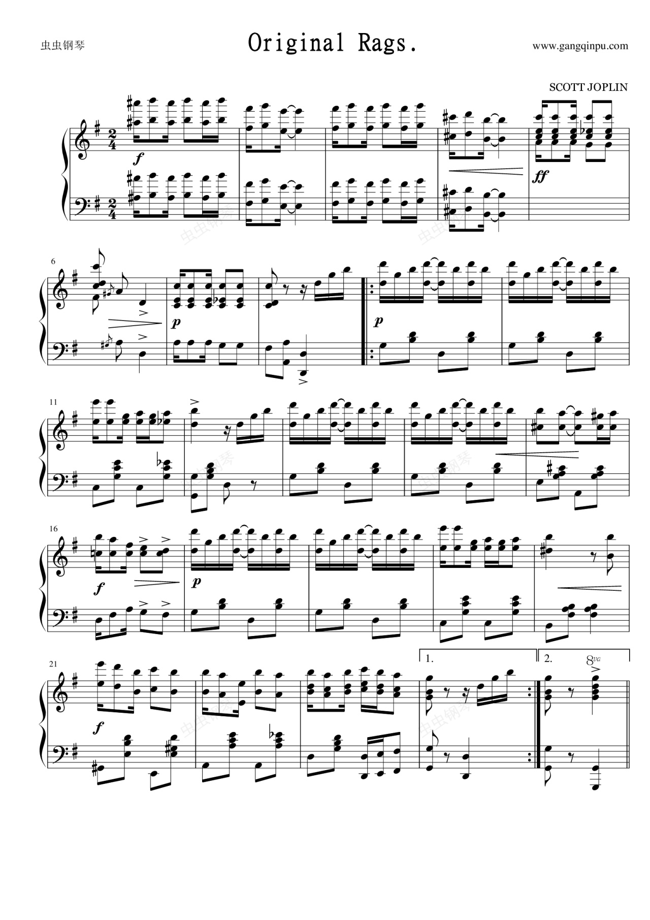 钢琴谱:原版拉格