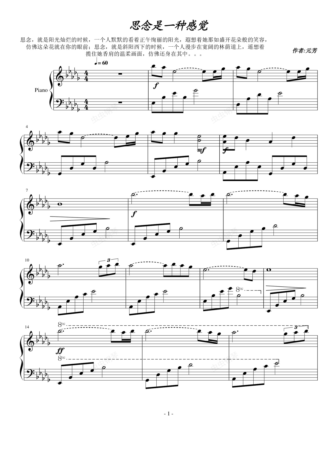 钢琴谱:思念是一种感觉