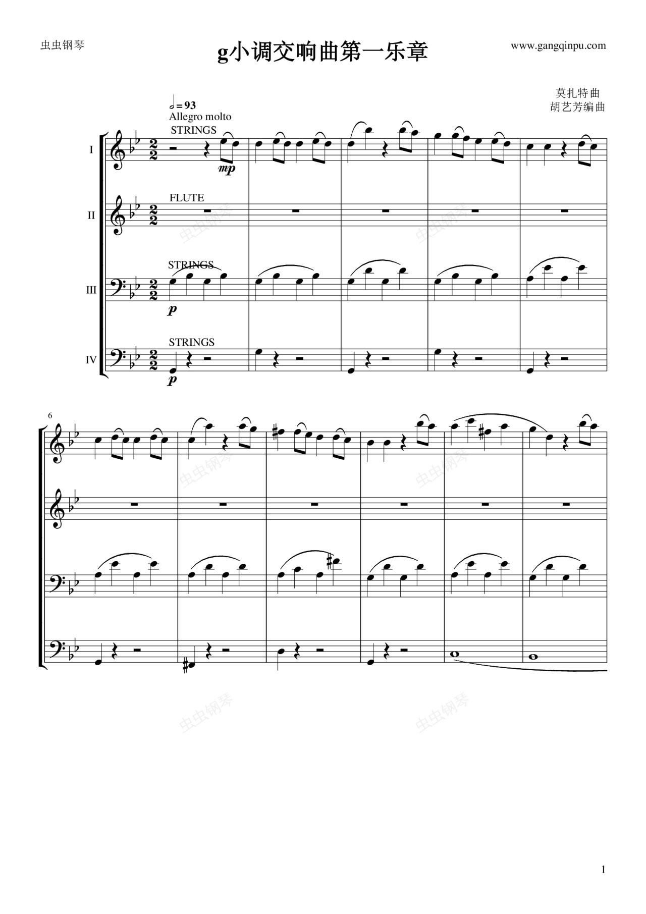 钢琴谱:莫扎特g小调第40交响曲第一乐章(电子琴总谱)