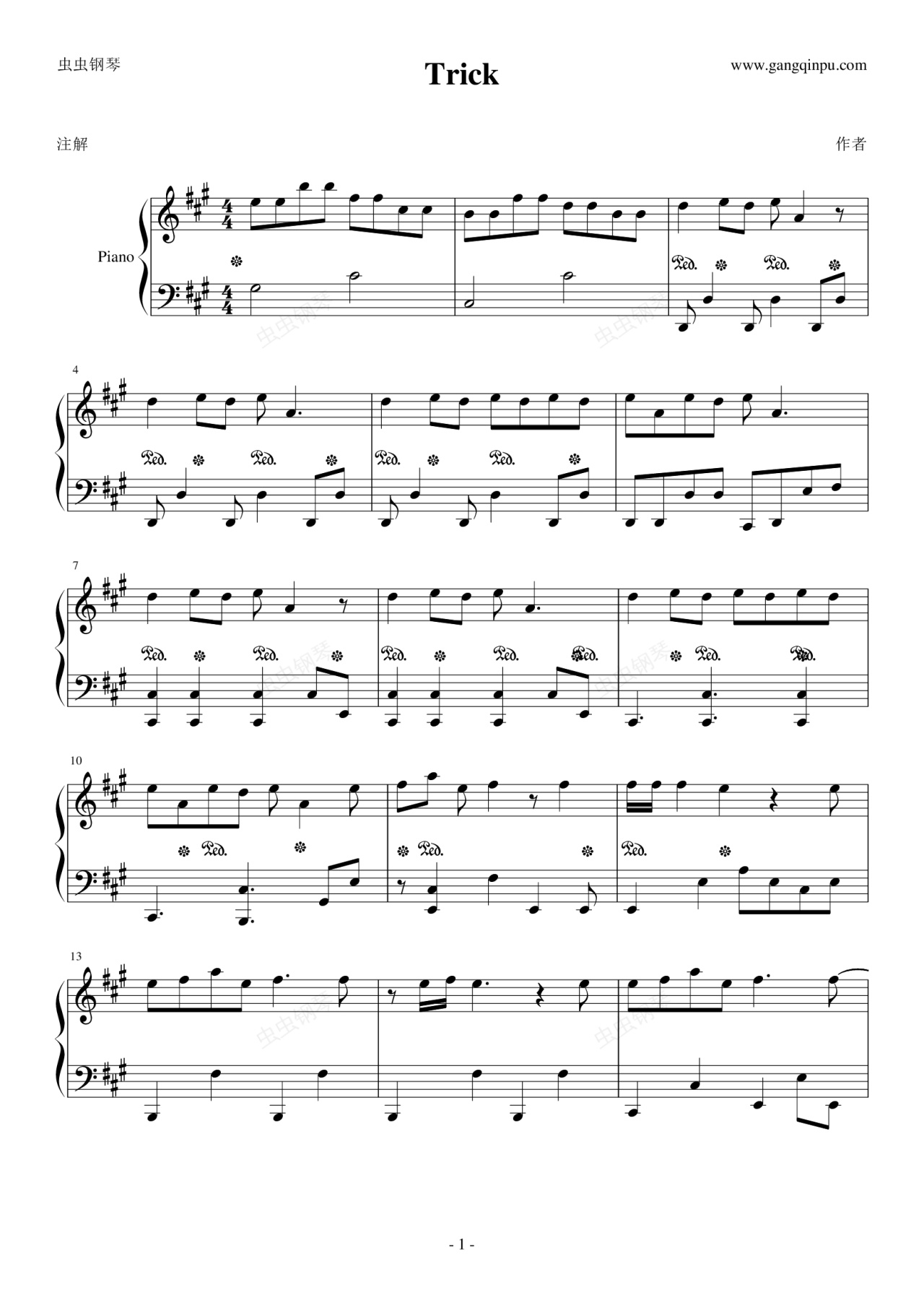钢琴谱:Trick