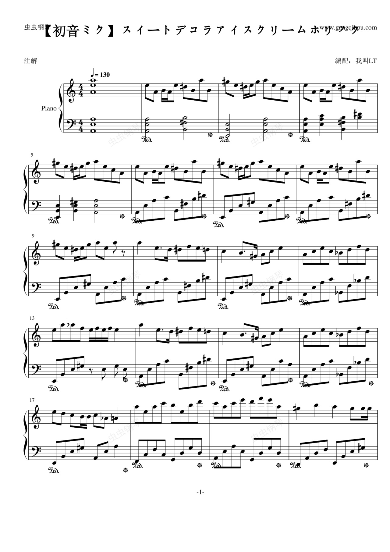 钢琴谱:黑暗中毒向【初音ミク】sweet decola icecream holic