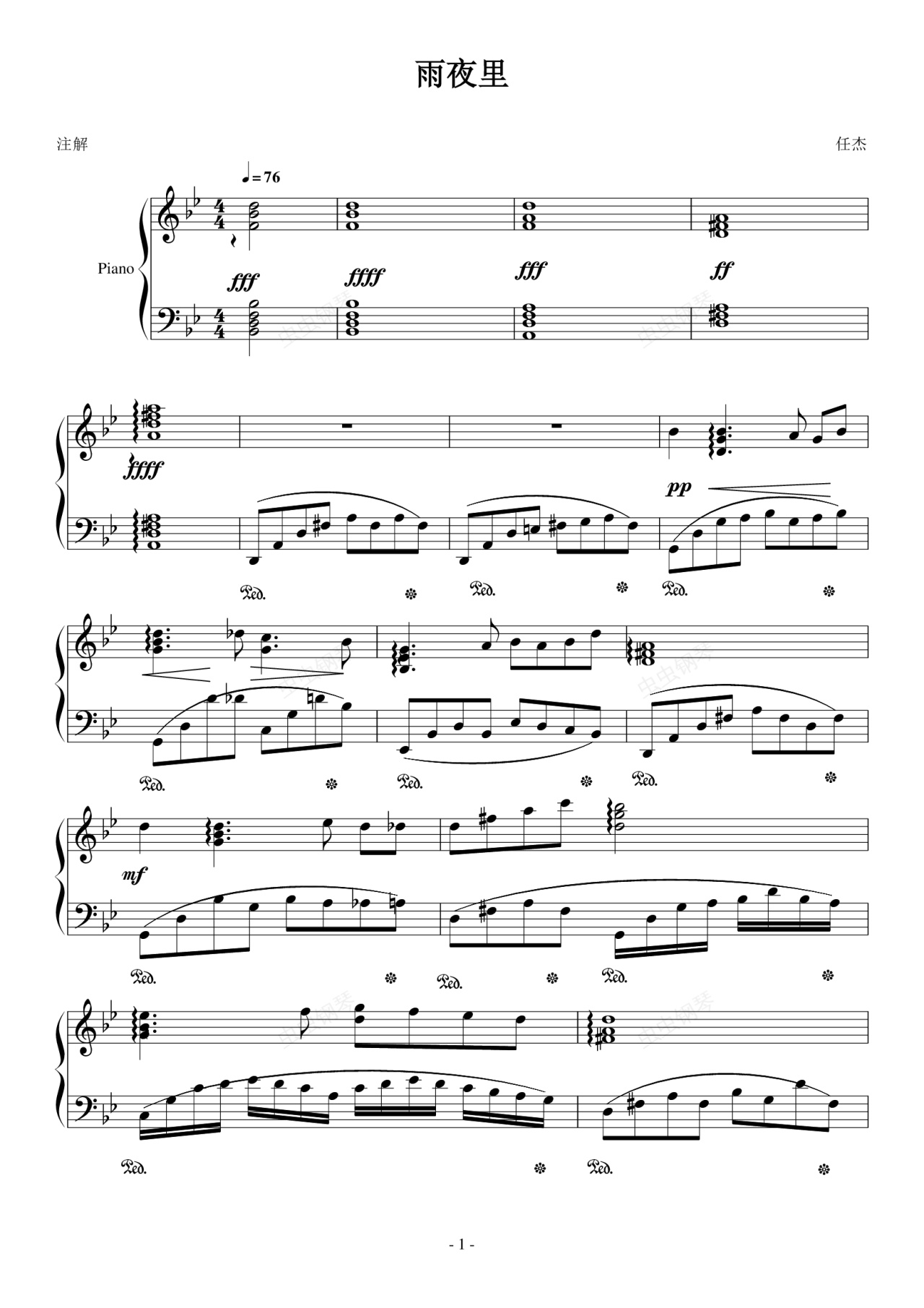 钢琴谱:雨夜里