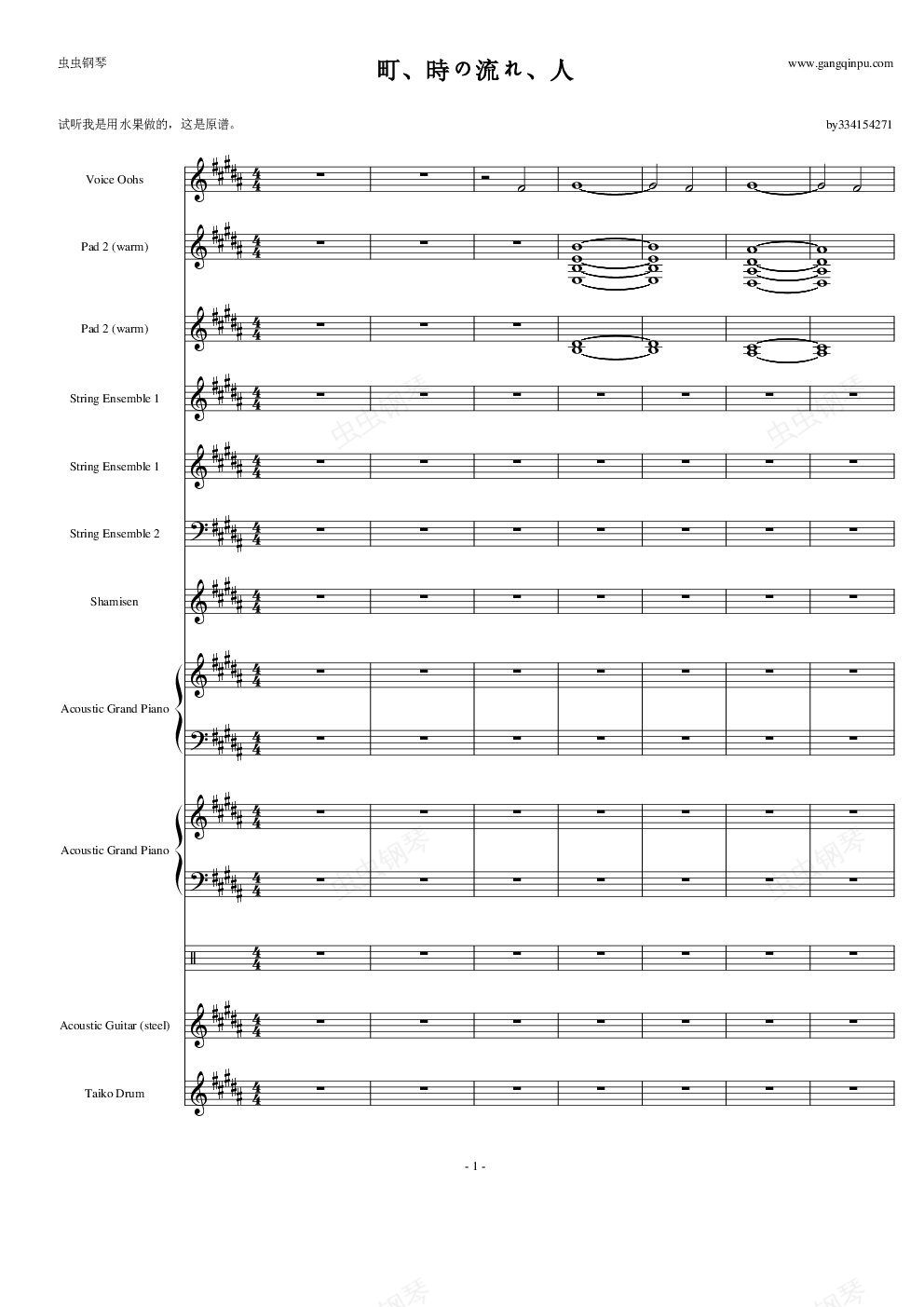 钢琴谱:町、時の流れ、人