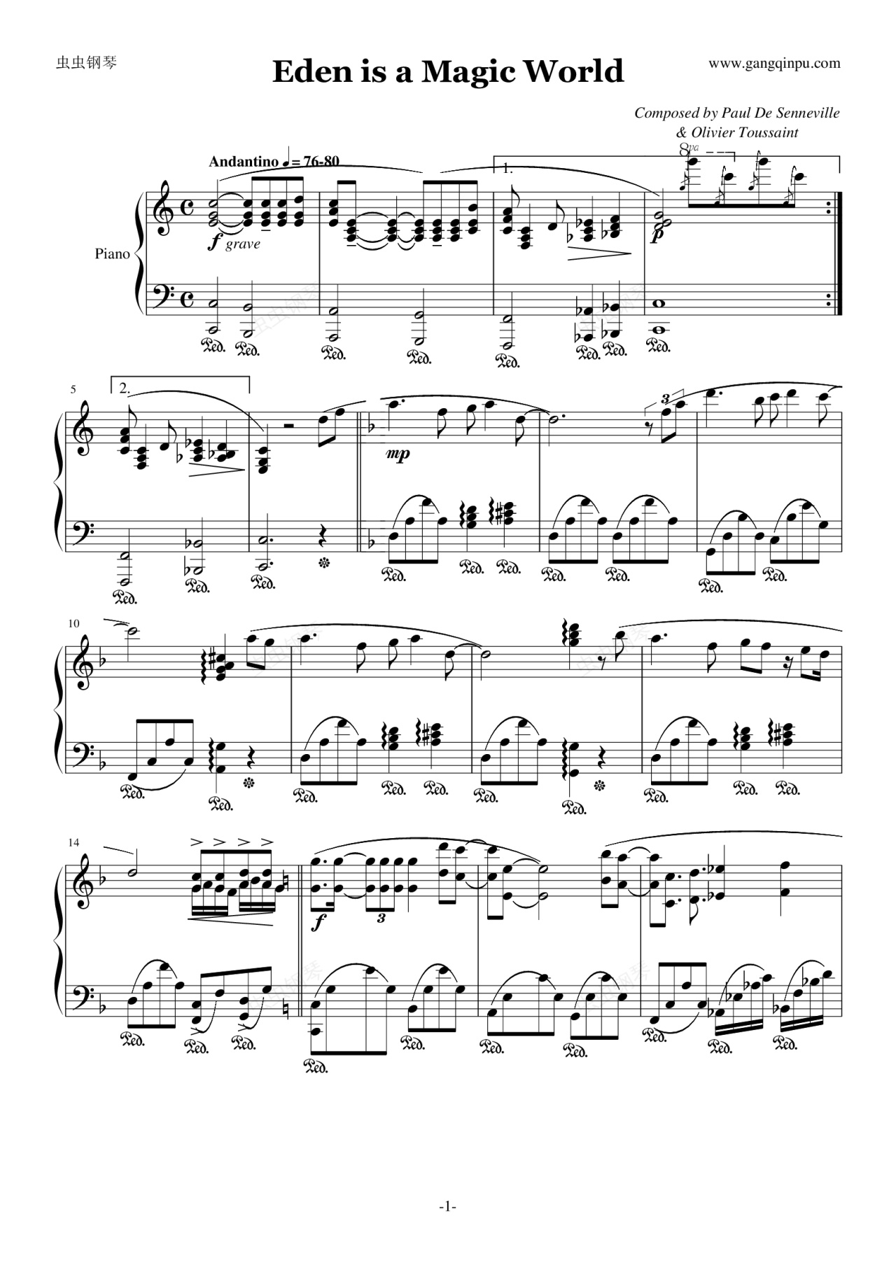 钢琴谱:伊甸园奇境(1983日本现场版)