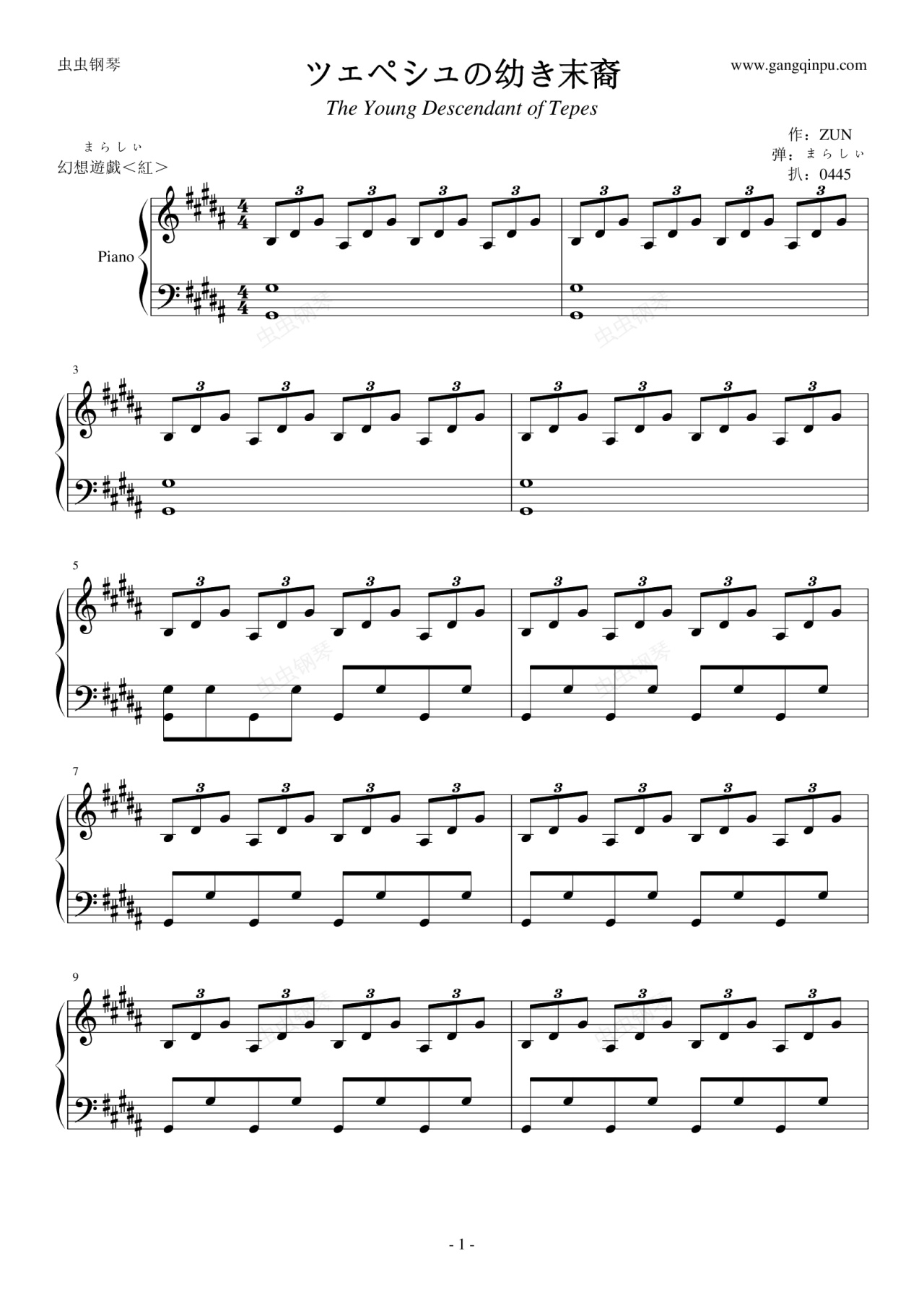 钢琴谱:【东方红魔乡】【触手猴】ツェペシュの幼き末裔