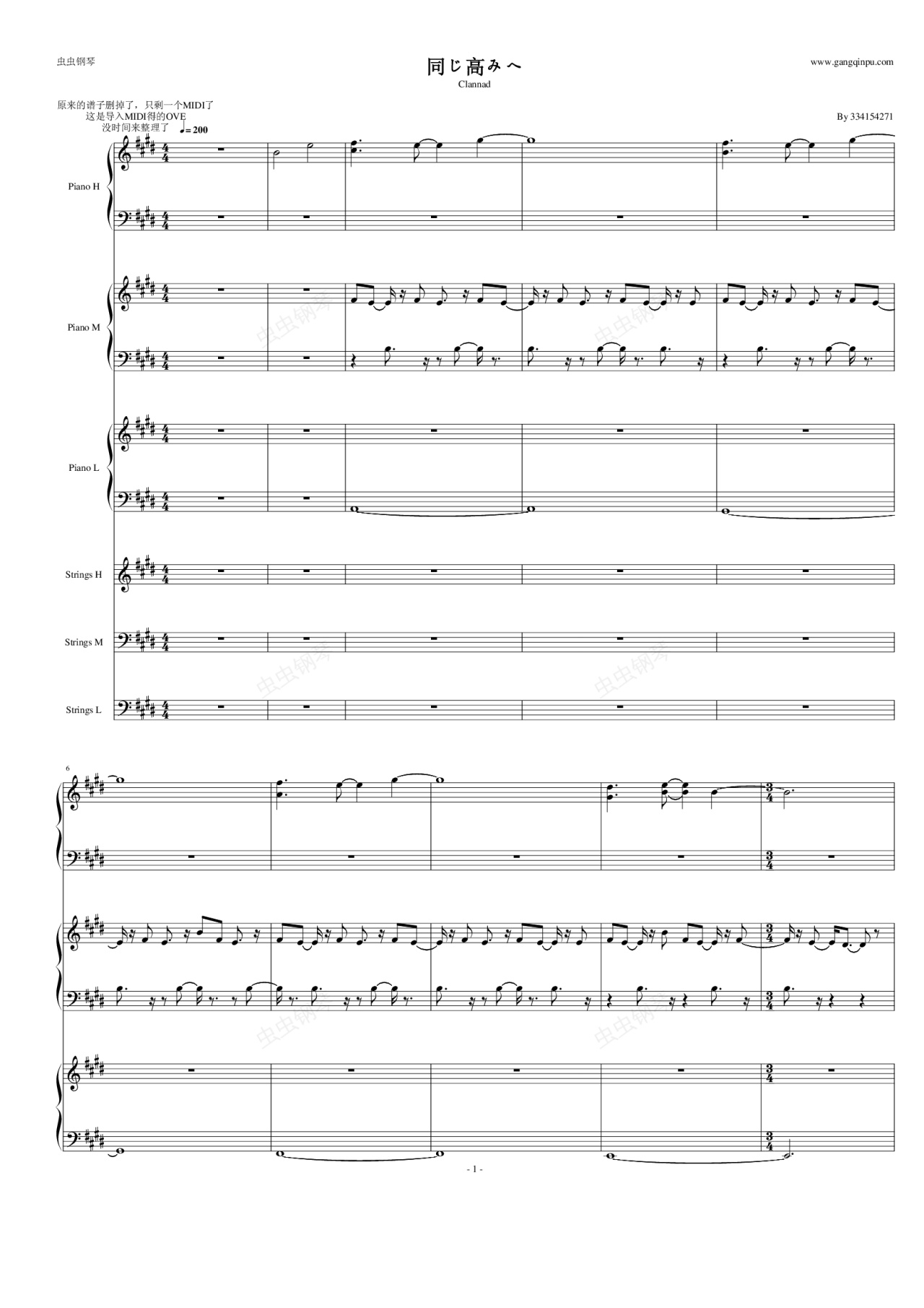 钢琴谱:同じ高みへ