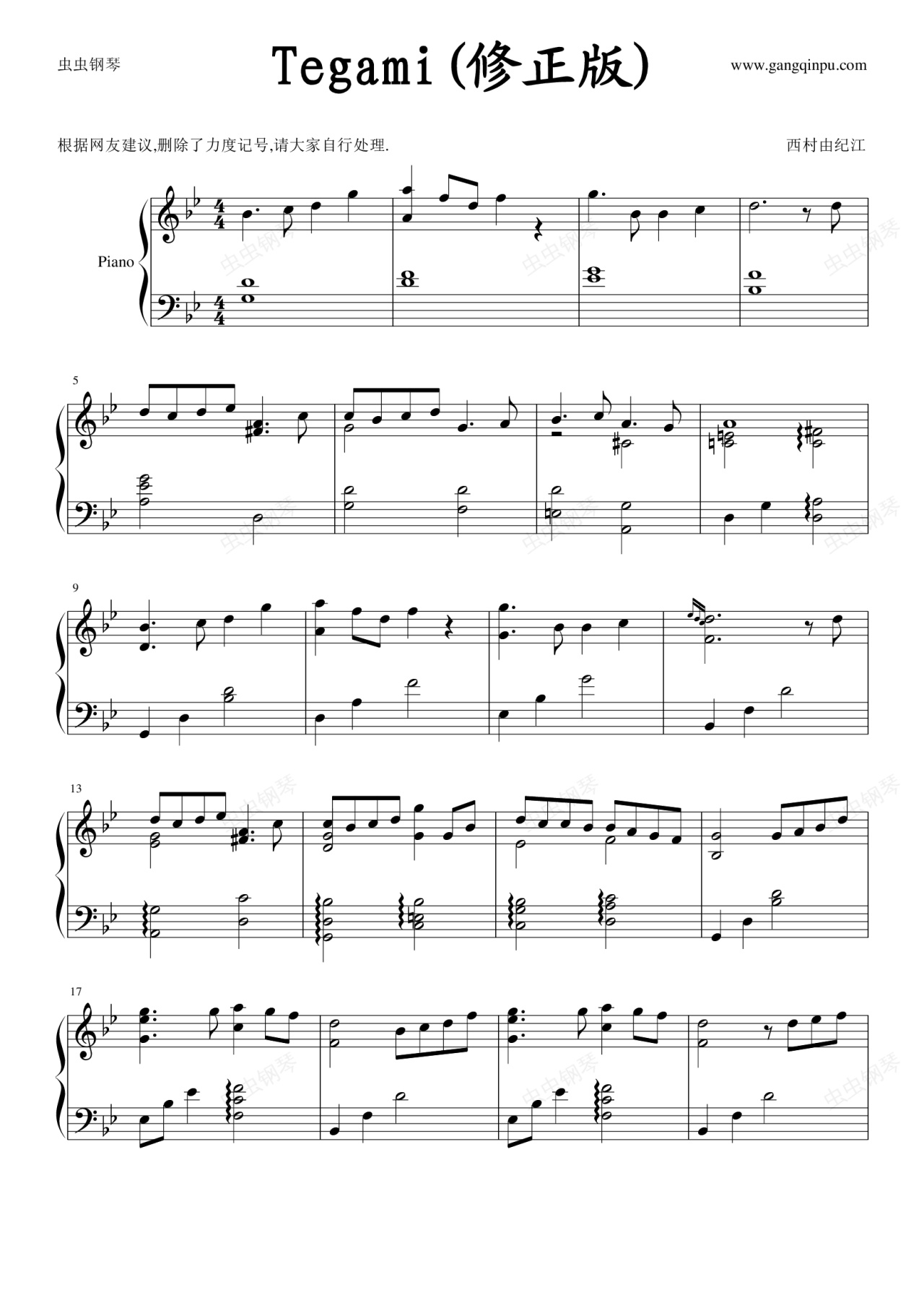 钢琴谱:Tegami