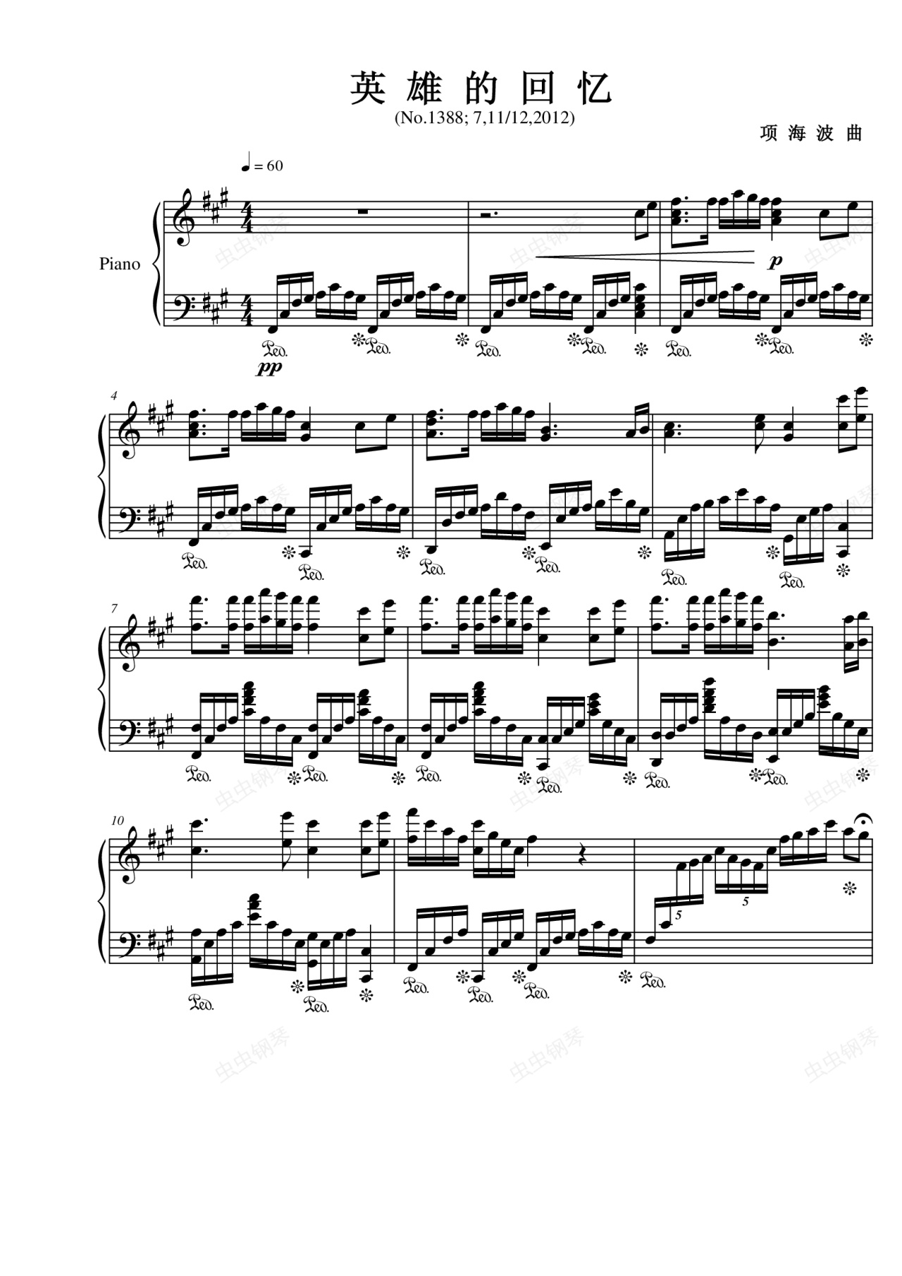 钢琴谱:送给绿诗翰:《英雄的回忆》